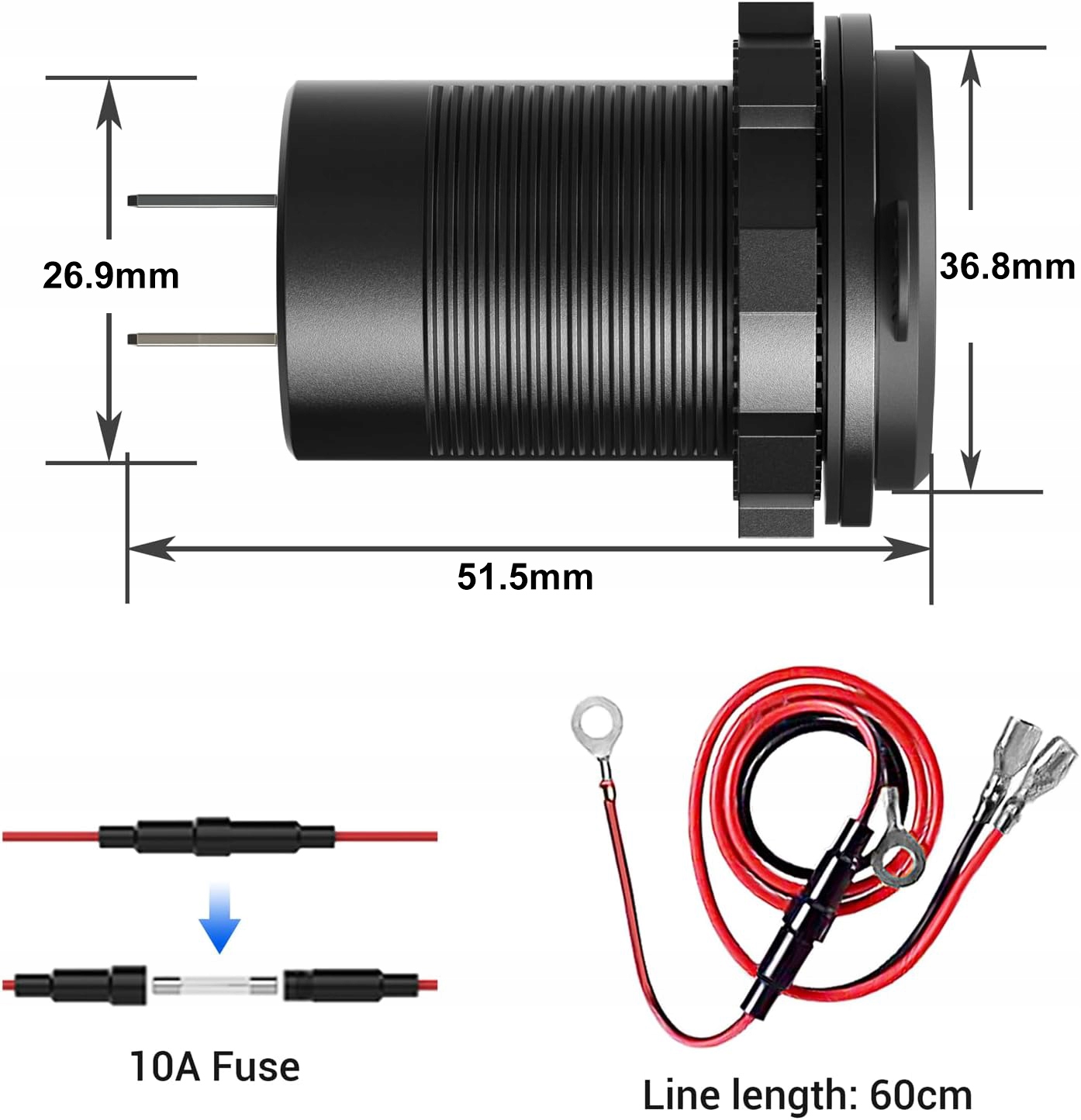 【Удобная и простая установка】 Этот разъем USB 12V очень прост и удобен для установки: просто подключите «+» к положительному зажиму и «-» отрицательно. Они также могут быть подключены к выключателю переключателя/цепи, чтобы сохранить энергию.