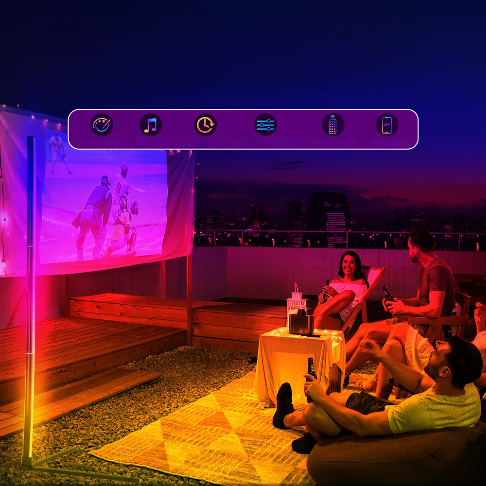 - Умный торшер RGB идеально подходит для лестниц, террас, стадионов, спален, гостиных, кафе и т. д.