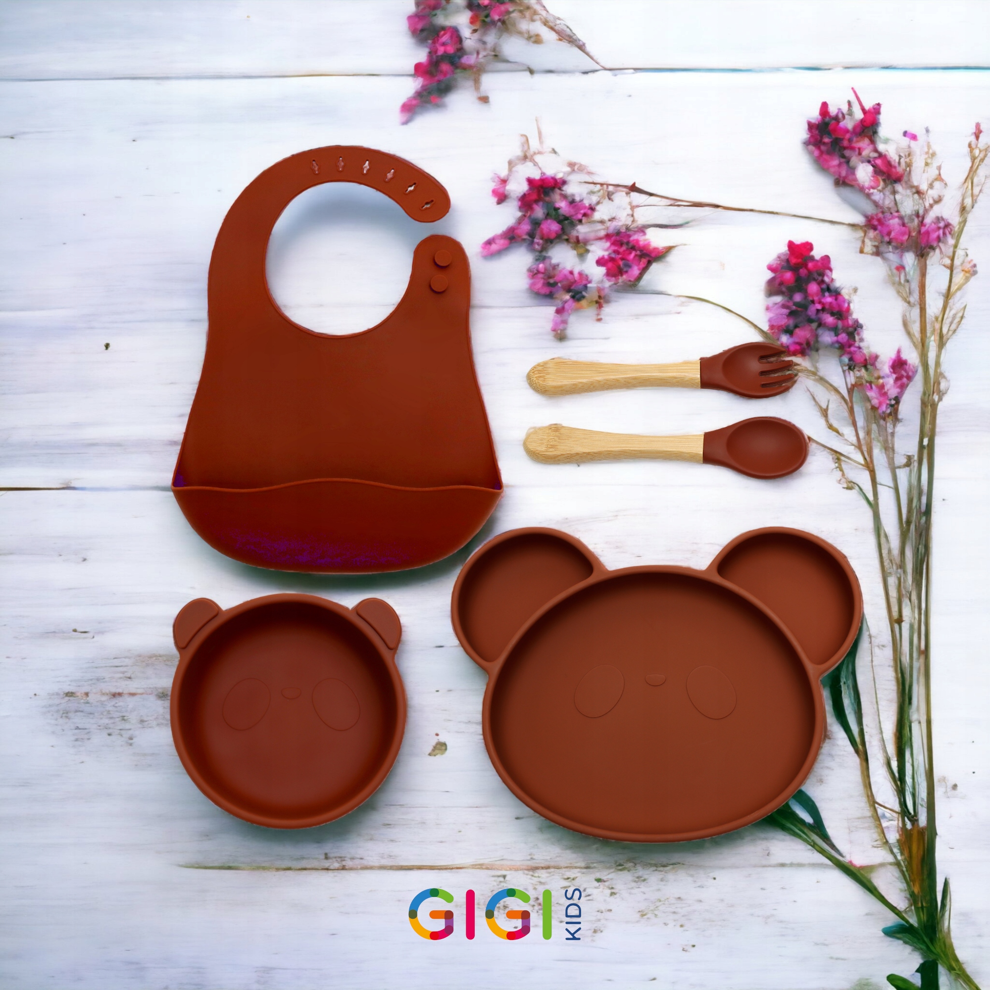 Комплект силиконовой миски на присоске PANDA + тарелка GIGI Kids, коричневый