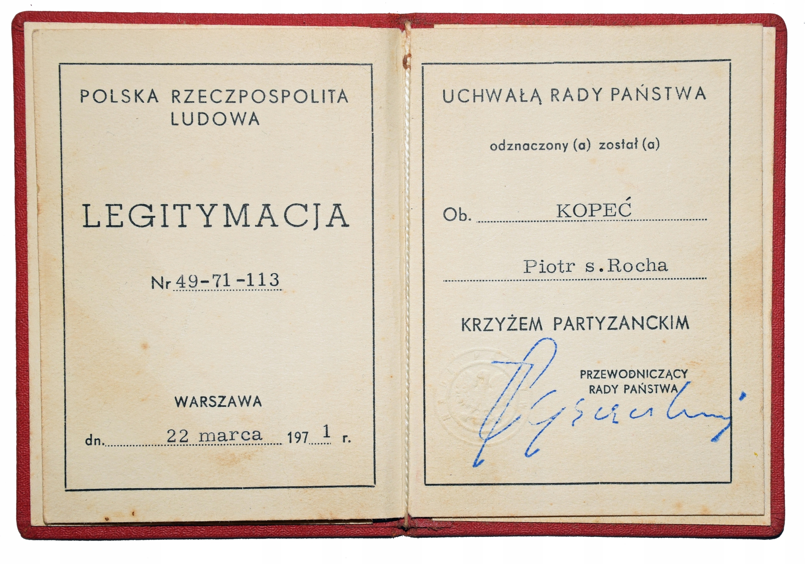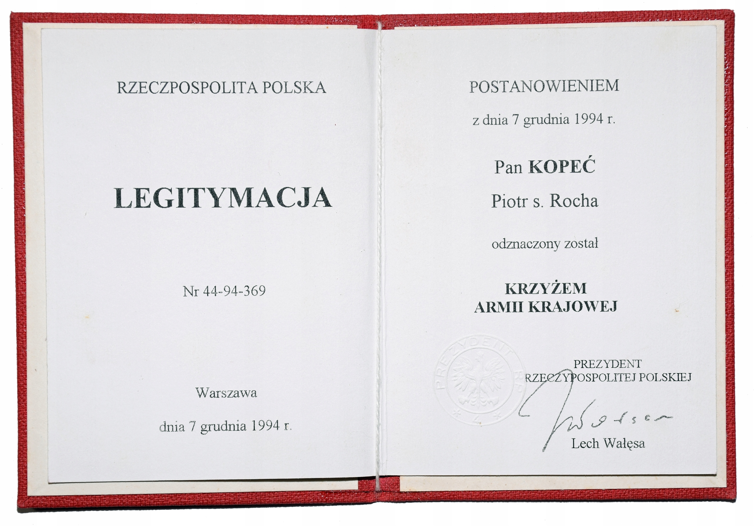 Удостоверения личности ветерана Армии Крайовой.