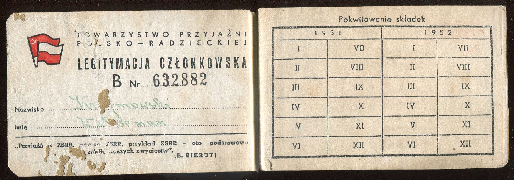 Посвідчення особи Товариства польсько-радянської дружби Вроцлав 1953 марки