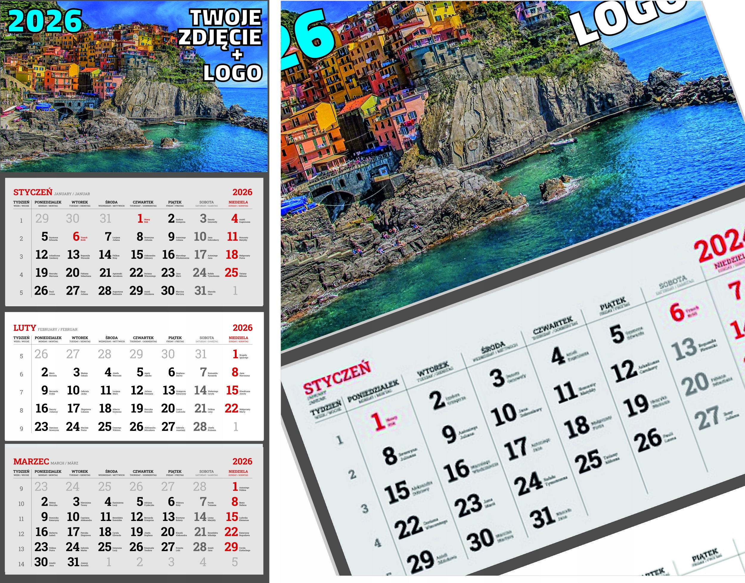 Календарь ТРОЙНОЙ 2026, 3 части, с печатью ЛОГОТИПА КОМПАНИИ - 10 шт.