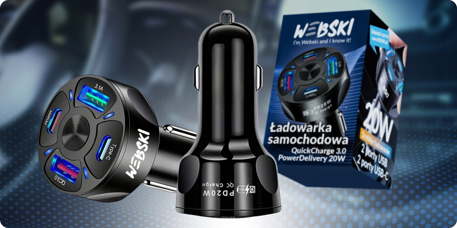 ⚡ Автомобильное зарядное устройство Webski Quick Charge 3.0 и Power Delivery мощностью 20 Вт с двумя портами USB и двумя портами USB-C ⚡