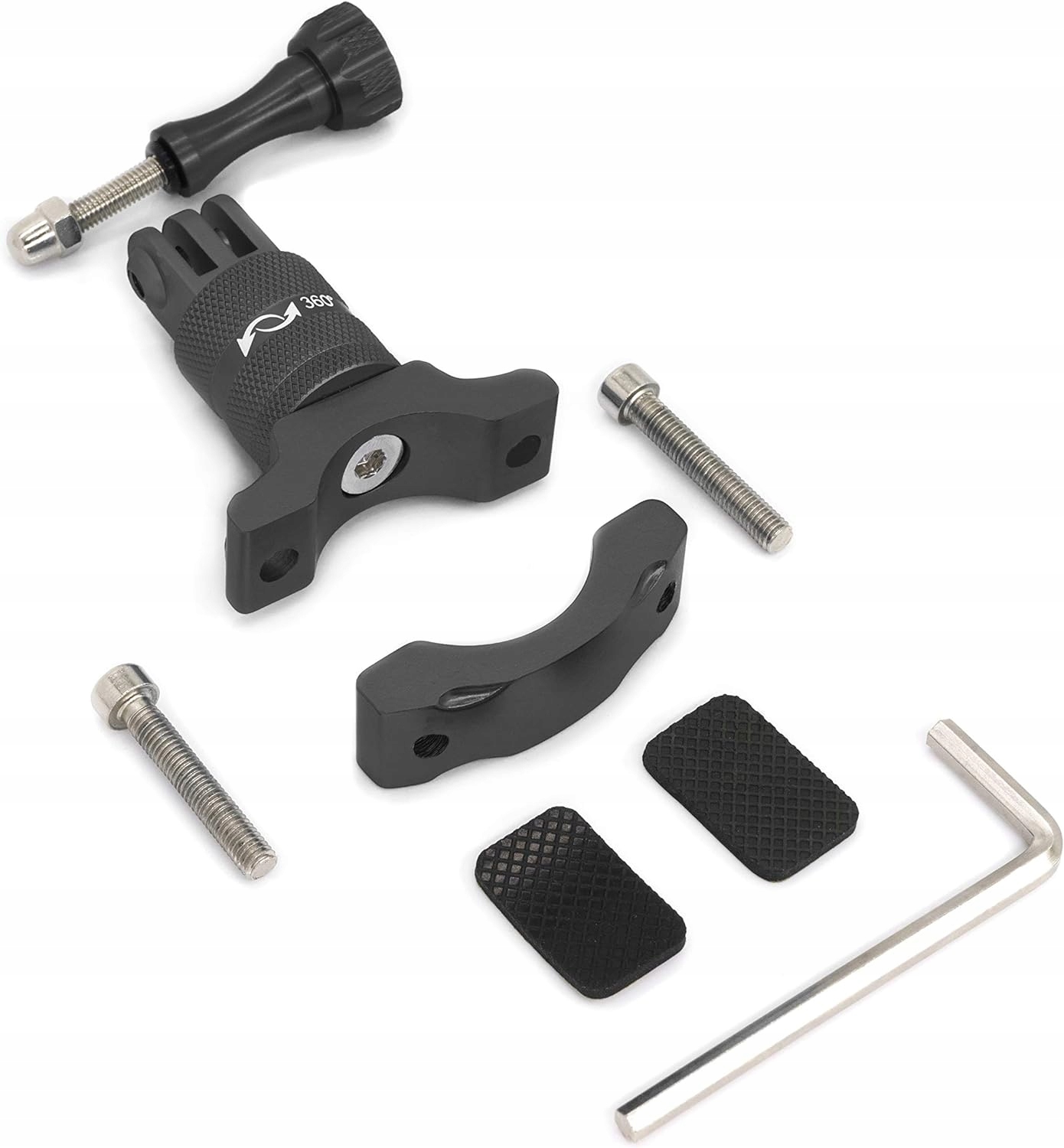 🚲🚲 Ваш продукт - вы получите компактный держатель рулевого колеса алюминиевого колеса для спортивной камеры. Благодаря встроенному вращению на 360 градусов можно сфотографировать вождение под разными углами.