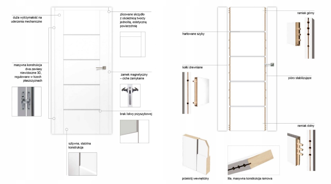 Дверь цельнокаркасная в исполнении без четверти со скрытыми петлями, польское производство.