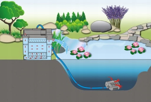 Для работы переливных фильтров также требуется циркуляционный или фонтанный насос. Насос должен иметь достаточную мощность, чтобы обеспечить оптимальный поток воды для трехступенчатой фильтрации.