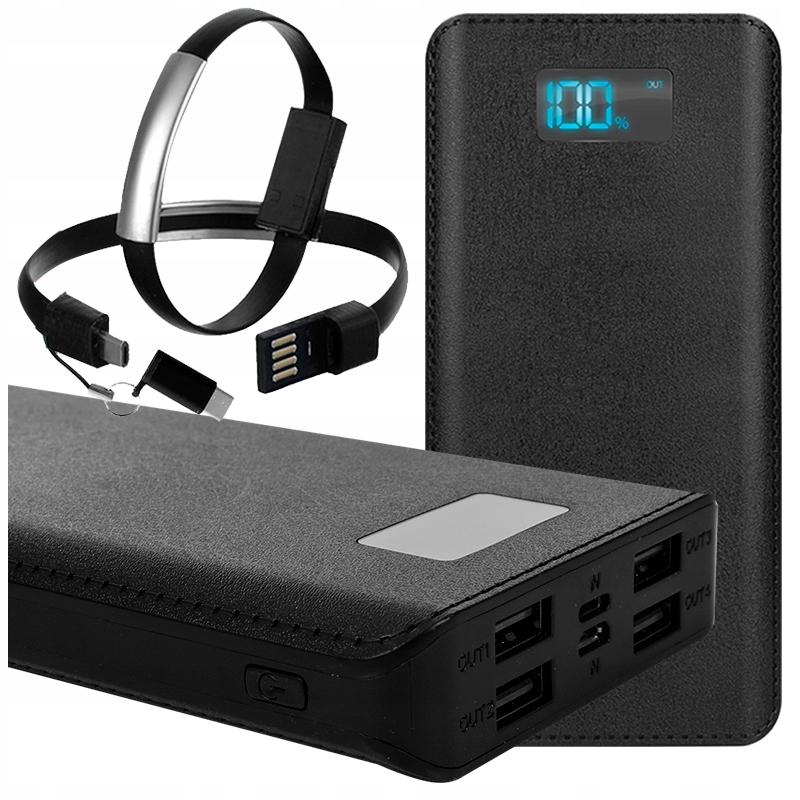 ⚡ Power Bank емкостью 20 000 мАч в элегантном корпусе, имитирующем кожу, и дисплеем с 4 USB-разъемами, позволяющими одновременно заряжать несколько устройств!