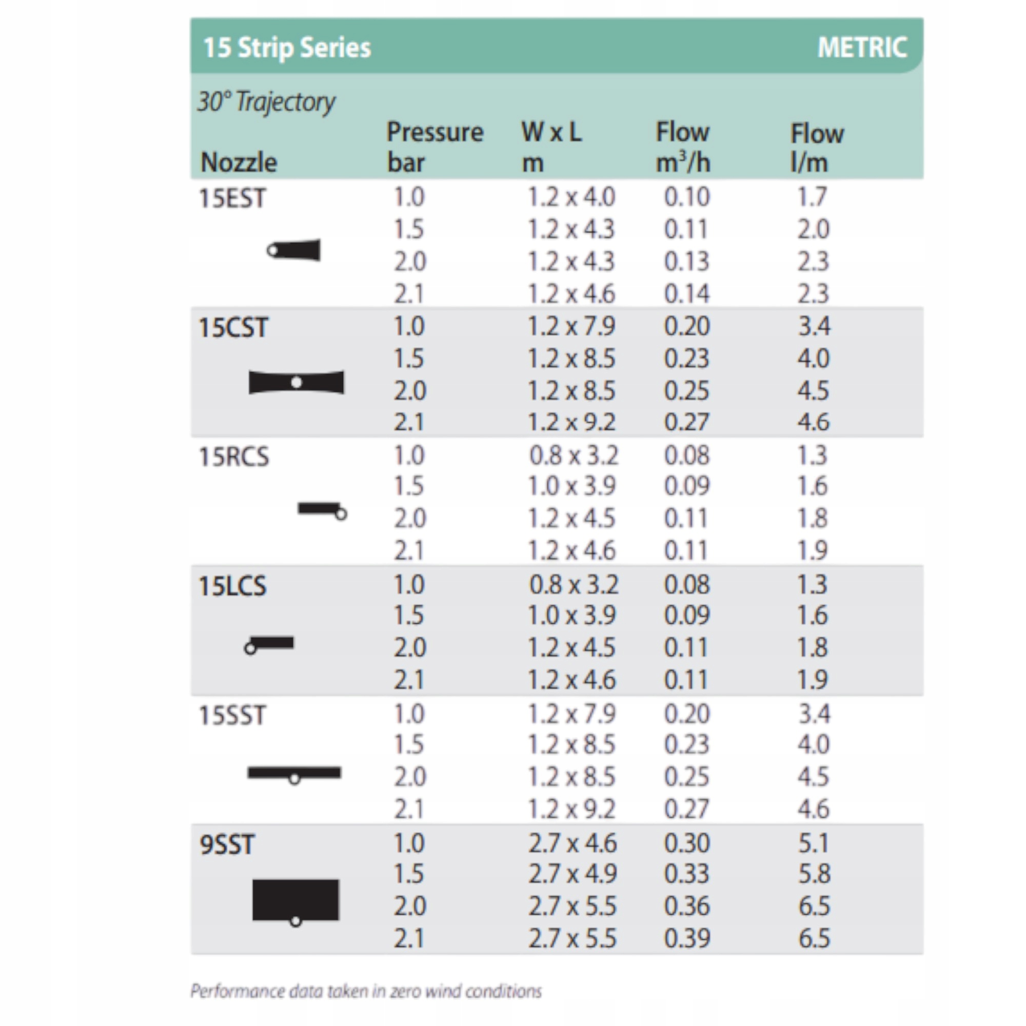 Модель 15Sst идеально подходит для орошающих узких областей с максимум 1,2 x 9,2 измерений m . Сопло обеспечивает точное полив таких зон без утрачивания воды.