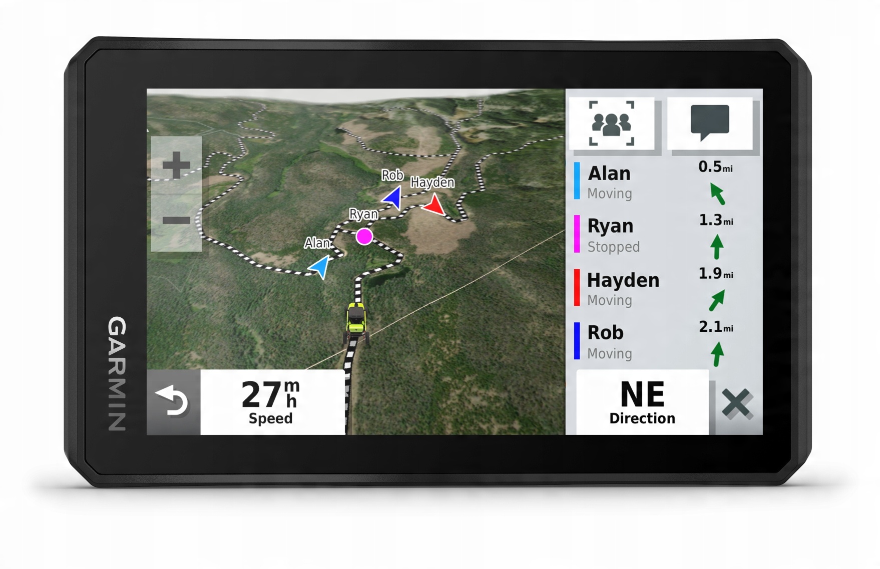 Входящий в комплект трекер групповых поездок позволяет отслеживать группу численностью до 20 человек. водители даже при сигнале сотового телефона. Кроме того, обмен данными о местоположении и сохраненные сообщения позволяют оставаться на связи с остальной частью группы (диапазон ОВЧ).
