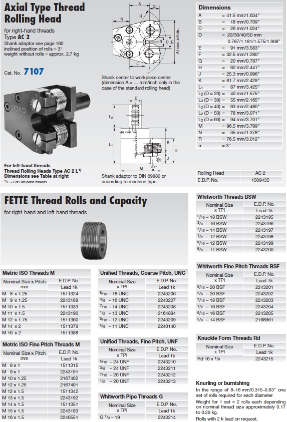 Поздовжня різьбонакатна головка AC2 FETTE + ролики M10 і M12