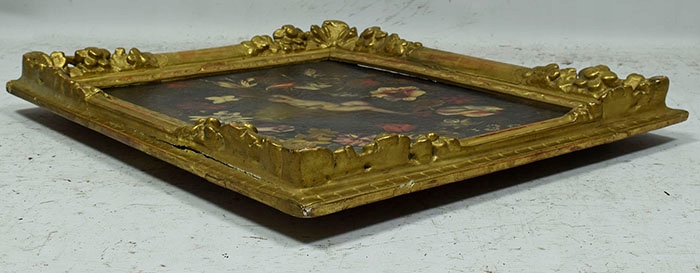 Красивая старая картина маслом, написанная на холсте, помещенная на подрамник, изображающая Иисуса Христа в цветочном венке. Авторство картины приписывают «Пьеру Франческо ЧИТТАДИНИ».