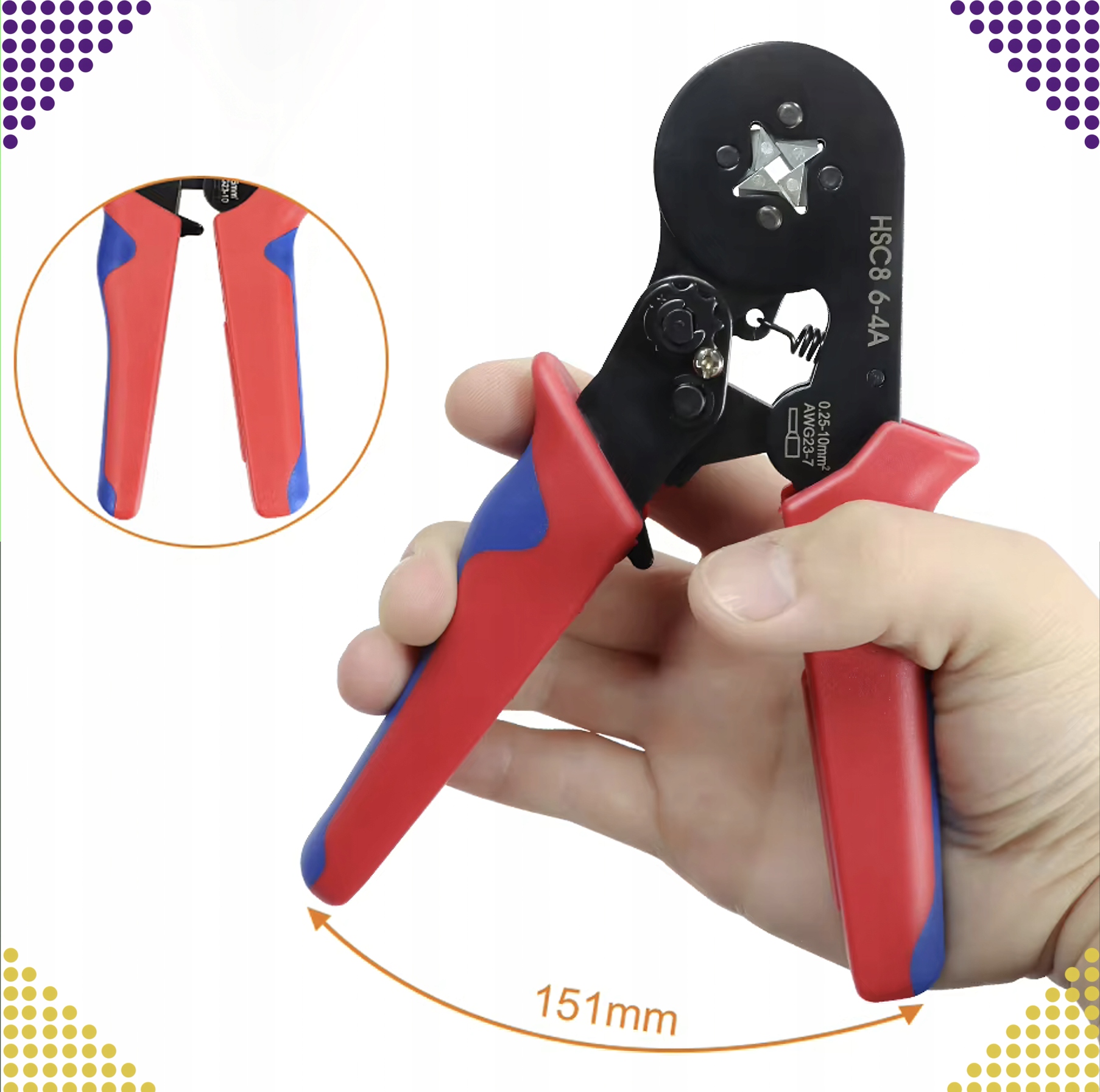 Съемник также дает вам возможность затянуть не -изолированные и изолированные соединения b>. Просто поместите вену с изолированным наконечником и положите ее в кончик разъема и поместите ее в место, предназначенное для зажима. Другая функция этого небольшого устройства - кабельный кабельный резак . Вы можете найти лезвие с длиной 11 мм между держателями инструментов.