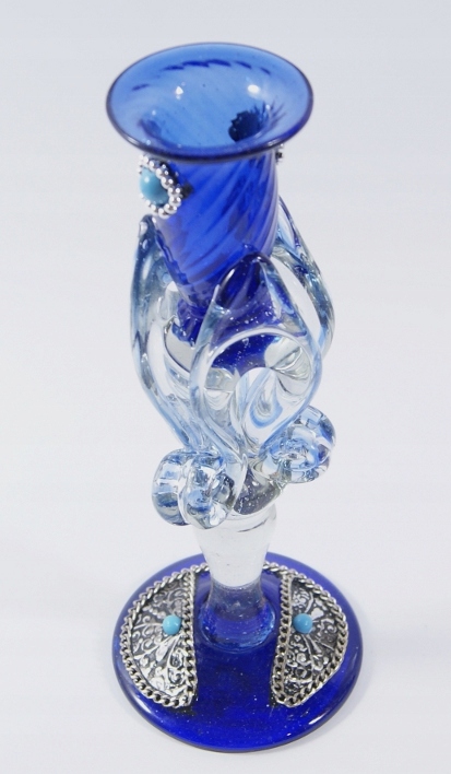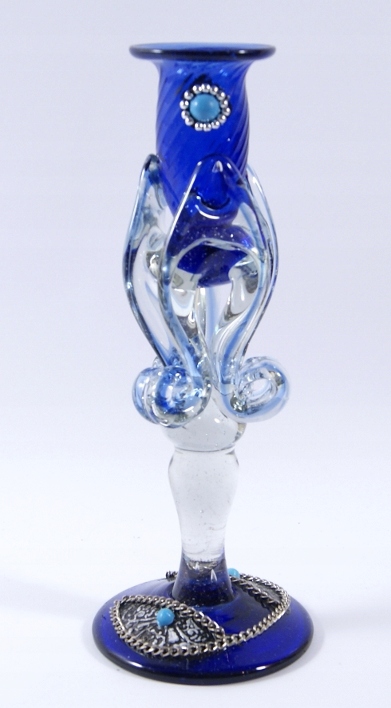 Прекрасная, старая подсвечника- ручная работа и украшен качанием- 20,8 см