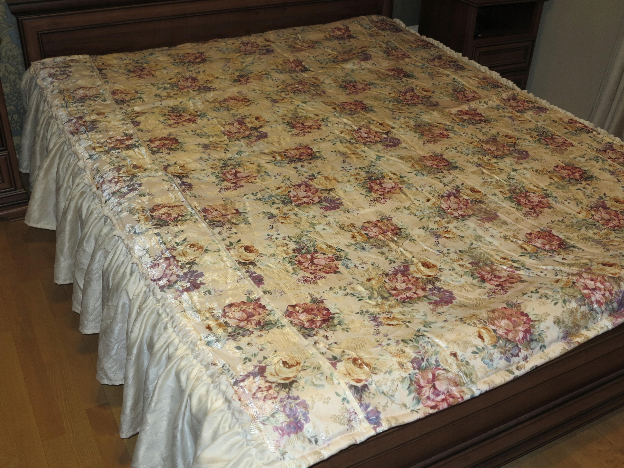 Предмет аукциона – необыкновенно красивое покрывало с букетами роз и двумя рюшами. Стеганое покрывало имеет легкий и мягкий наполнитель. Б/у, в отличном состоянии, новый без бирок. Рекомендую
