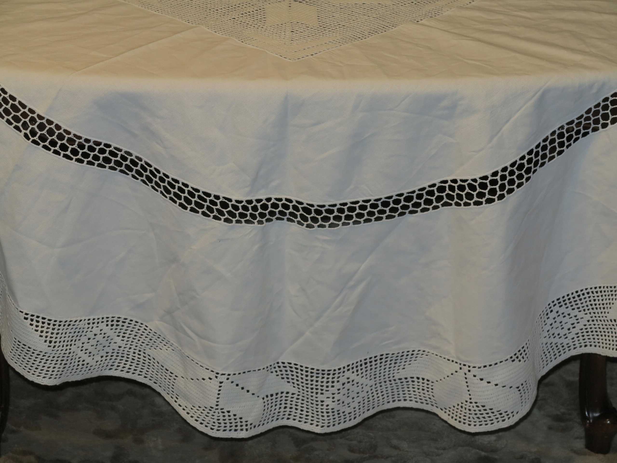 Красивая снежная ткань холста+богатый вязание крючком, как новый 176 см.
