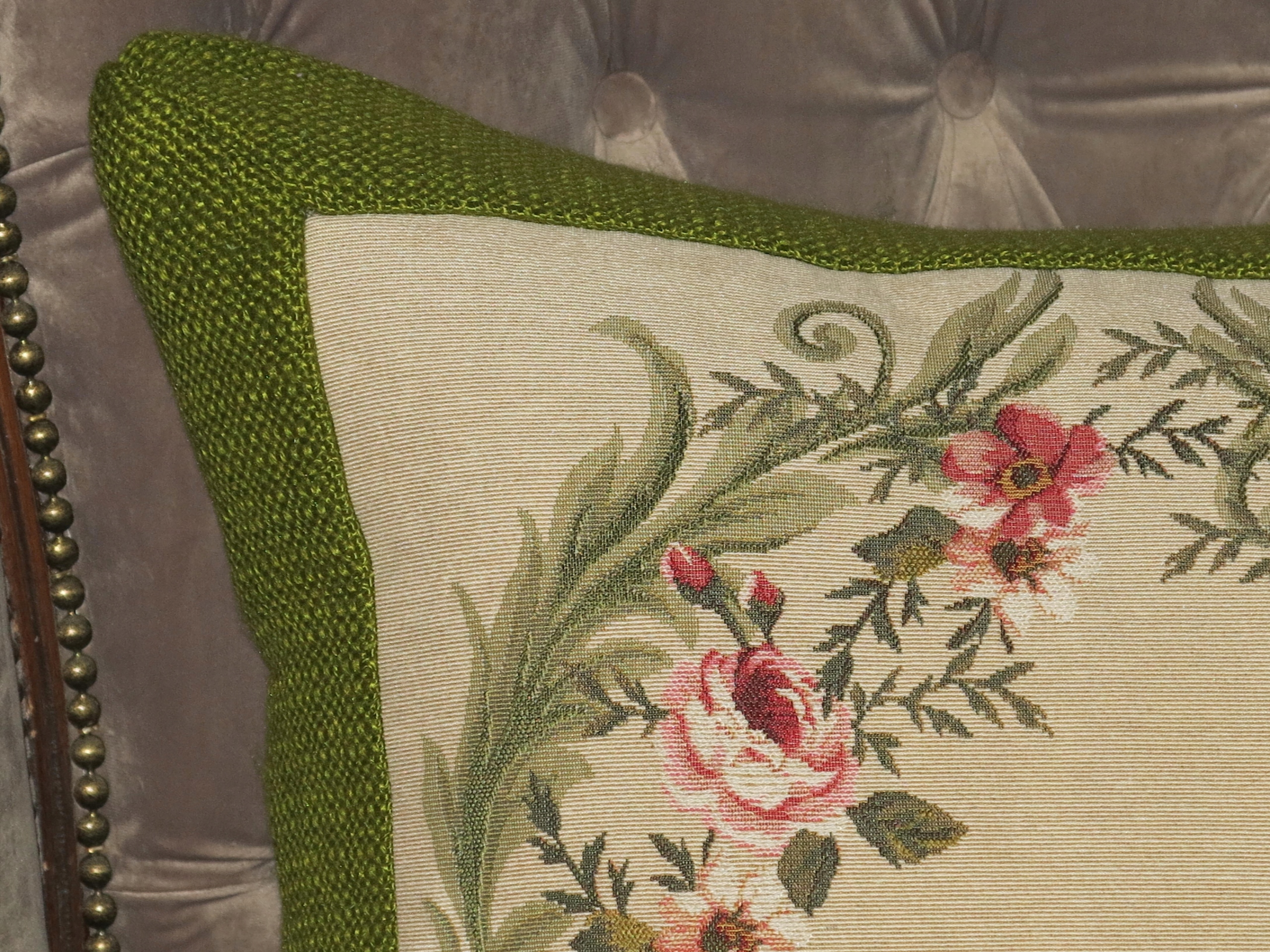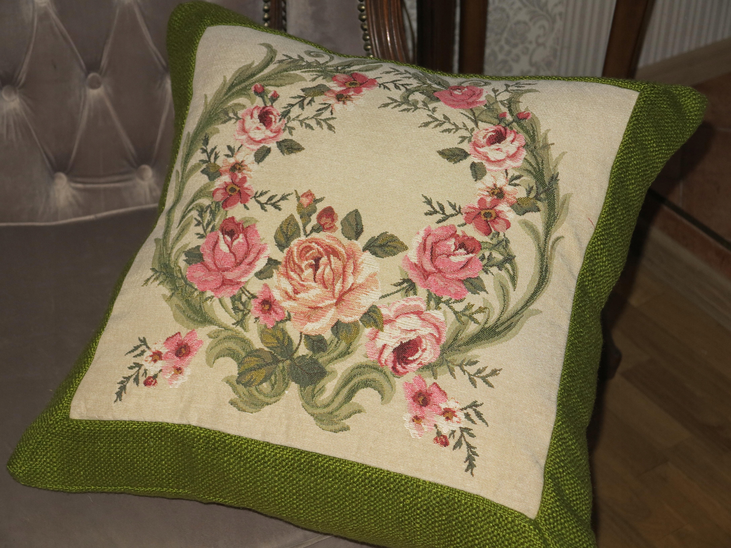 Чрезвычайно красиво очень большой Стильная подушка с гобеленом- розовым венком. Подушка с начинкой