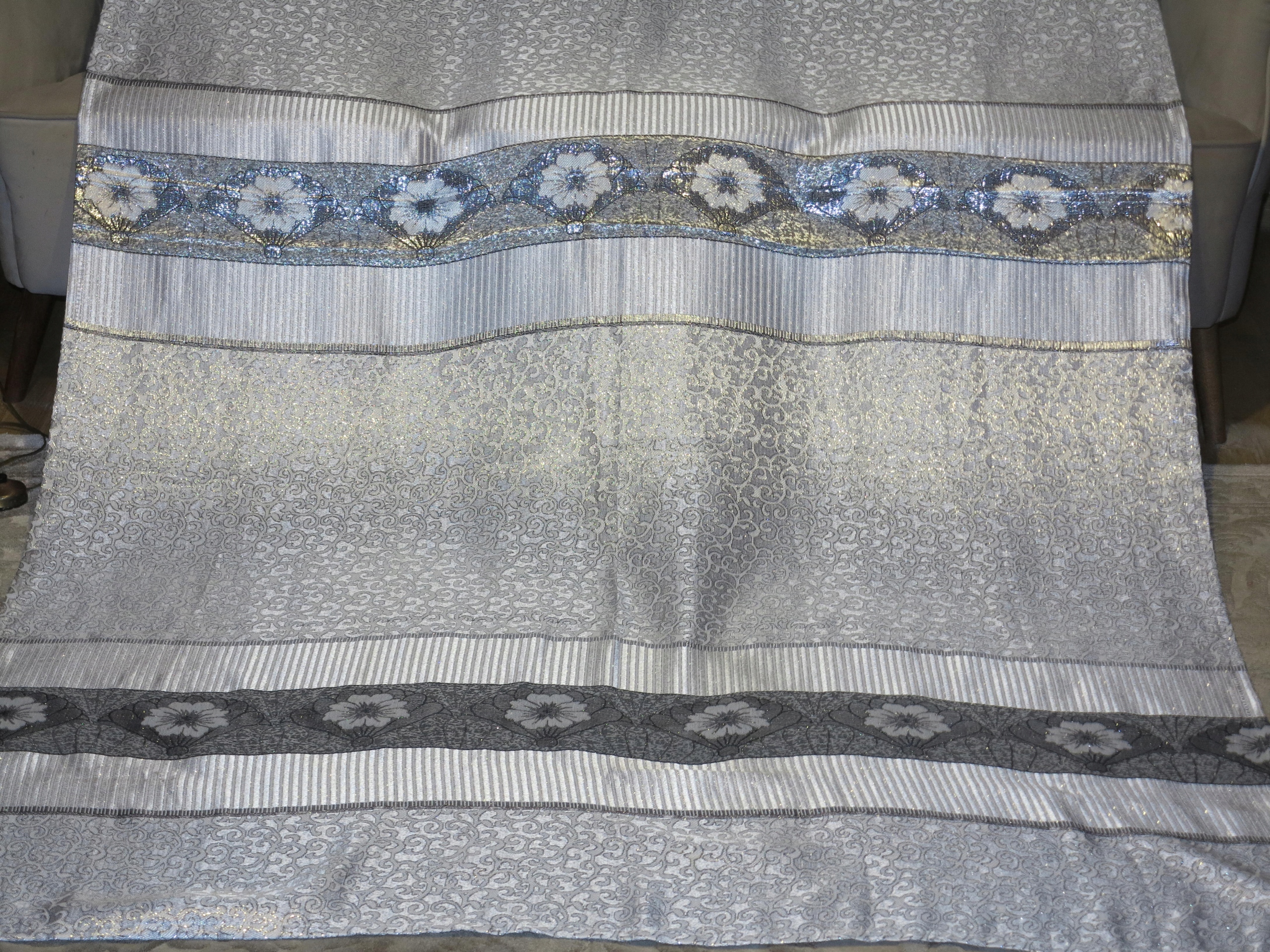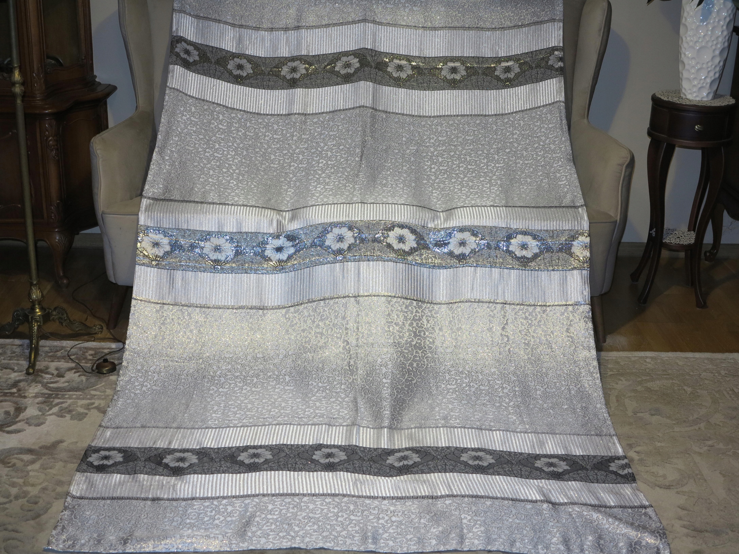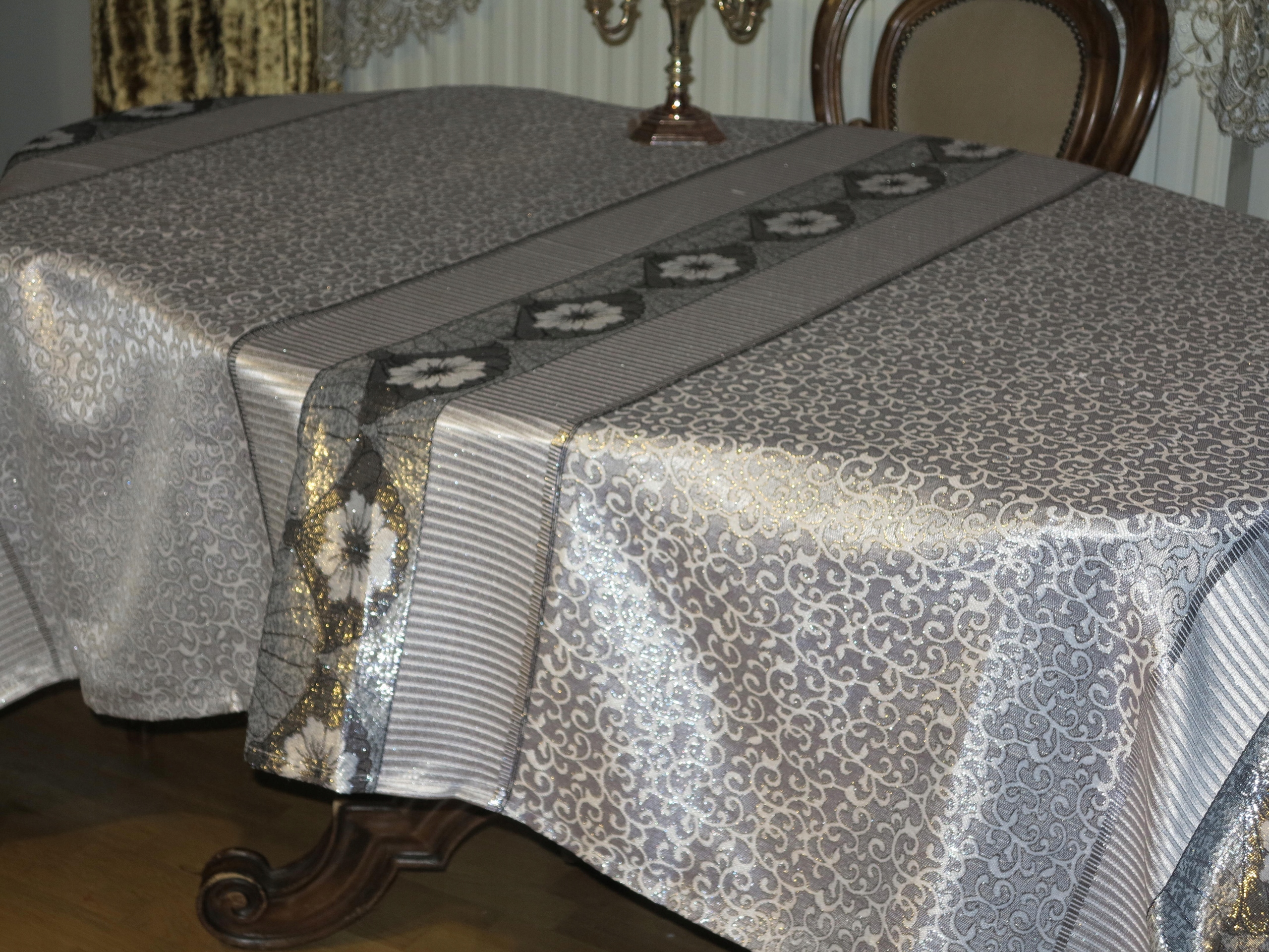 Красивая большая скатерть в серебра, с богатой серебряной нитью- 238/144