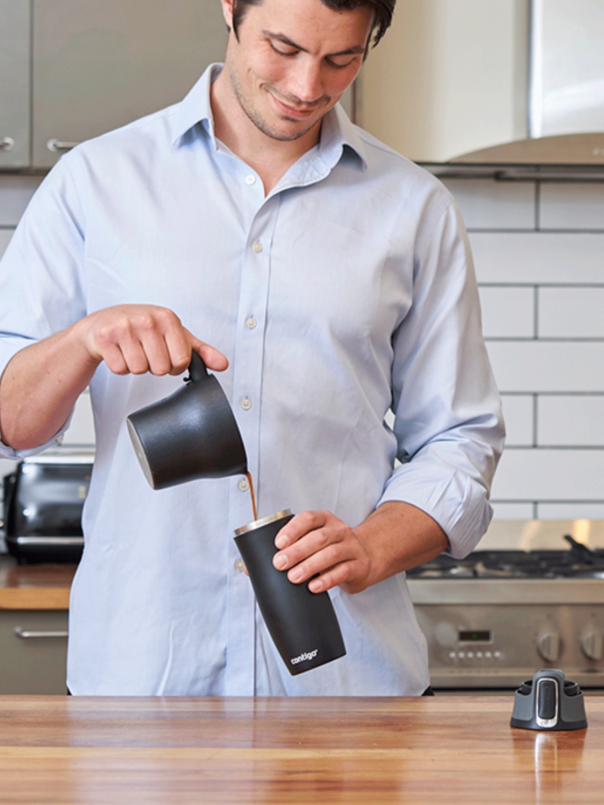 Вместо маленького эспрессо вы предпочитаете крепкий, очень большой кофе, который поможет вам полноценно проснуться даже после самой тяжелой ночи? Без проблем! Наш Contigo West Loop серебристый, латте и любой другой цвет имеет емкость 470 мл. Это две большие чашки теплого кофе, которыми можно наслаждаться полдня на работе, учебе или путешествии. Конечно, наполнить чашку можно только наполовину. Но зачем так себя ограничивать?
