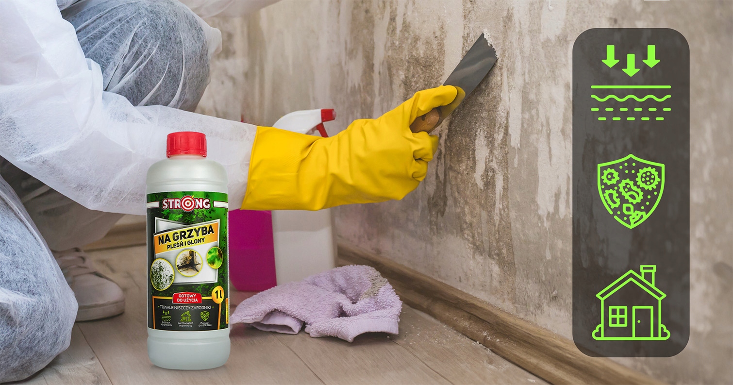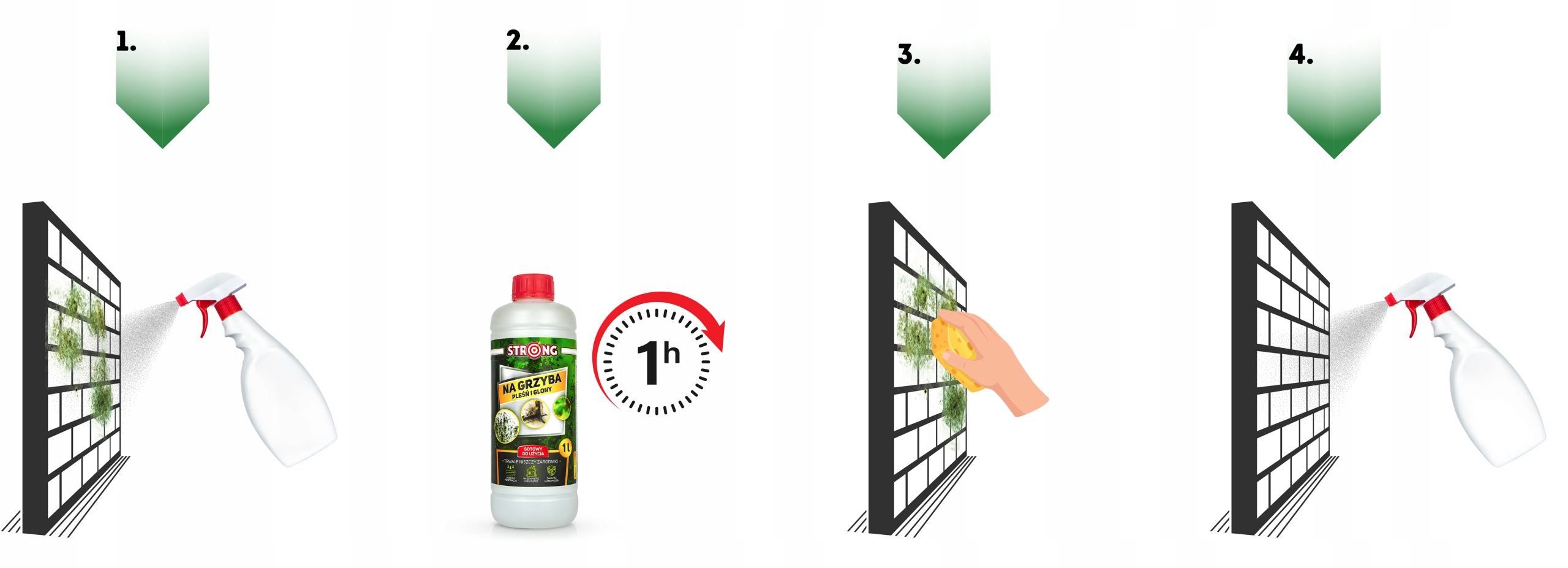 СИЛЬНО ПРОТИВ ГРИБКА, ПЛЕСЕНИ И ВОДОРОСЕЙ — универсальный препарат, который хорошо работает в различных помещениях, где существует риск появления грибков, плесени и водорослей. Использование фунгицидной и молдицидной жидкости идеально подходит для использования в местах, подверженных повышенной влажности, таких как ванные комнаты, кухни, прачечные, подвалы и другие помещения, где конденсация водяных паров является распространенным явлением.