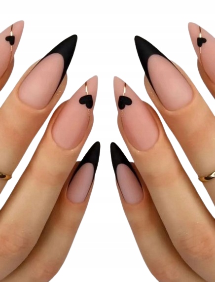 PRESS ON NAILS TIPSY 24 насичено-чорні ФРАНЦУЗЬКІ сердечка