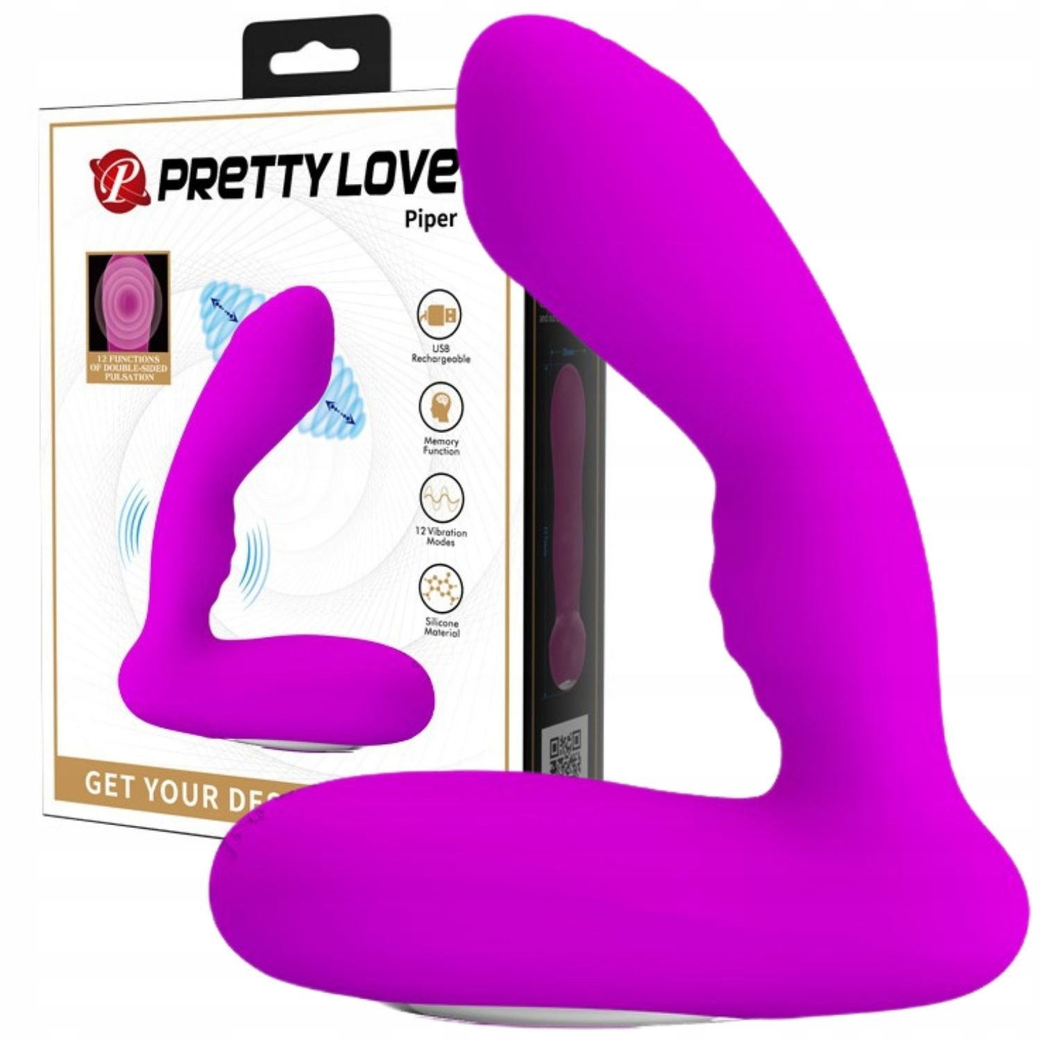 Название продукта: PRETTY LOVE — Piper — USB-массажер простаты, фиолетовый