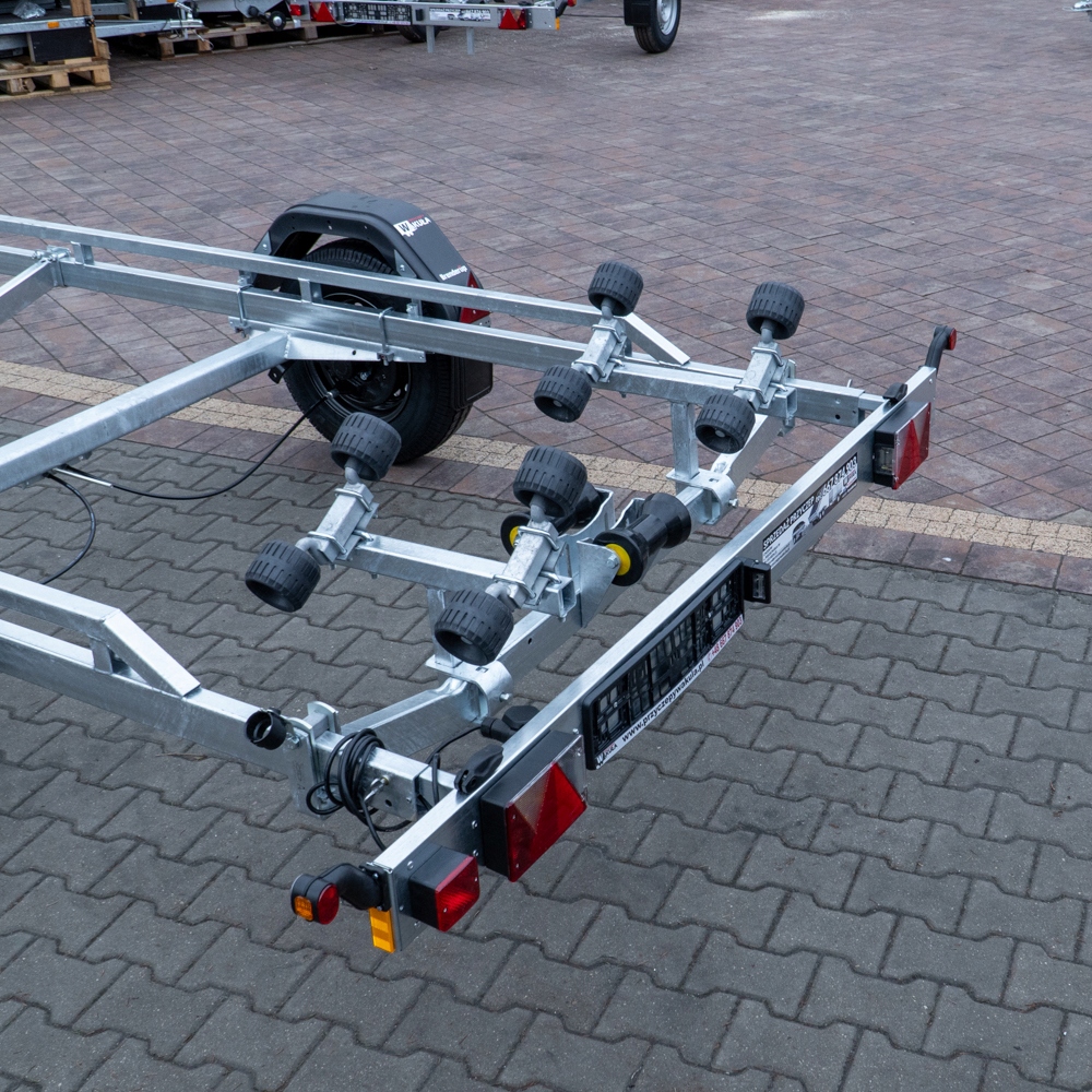 Трейлер Braked для Лодзи до 22 ». Фокус на V -образной розыгрыше и очень хорошие водительские свойства. Самые качественные ролики, которые снижают риск повреждения корпуса лодки. Задняя колыбель и регулируемые двойные боковые рулоны облегчают лодку. Firestorm Galvaniced Chassis для долговечности и сопротивления вашего трейлера. Электрические кабели полностью скрыты и защищены внутри шасси трейлера. Водонепроницаемые подшипники колес обеспечивают более длительный период использования. Шайца и победительную башню легко регулируются, чтобы они могли адаптироваться к вашей лодке. Шахта для лебедки также оснащена дополнительным защитным кабелем для использования во время транспортировки Лодзи на трейлере. Легкая разборка осветительной панели с быстрой выпуском для легкой загрузки и разгрузки лодки в воду