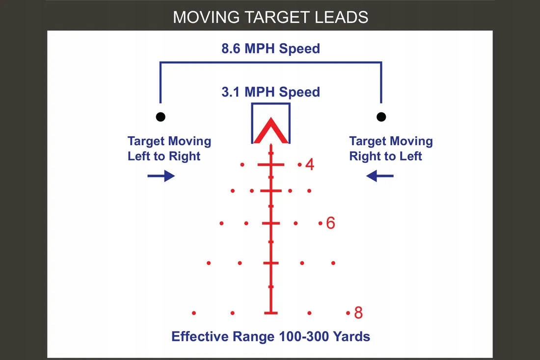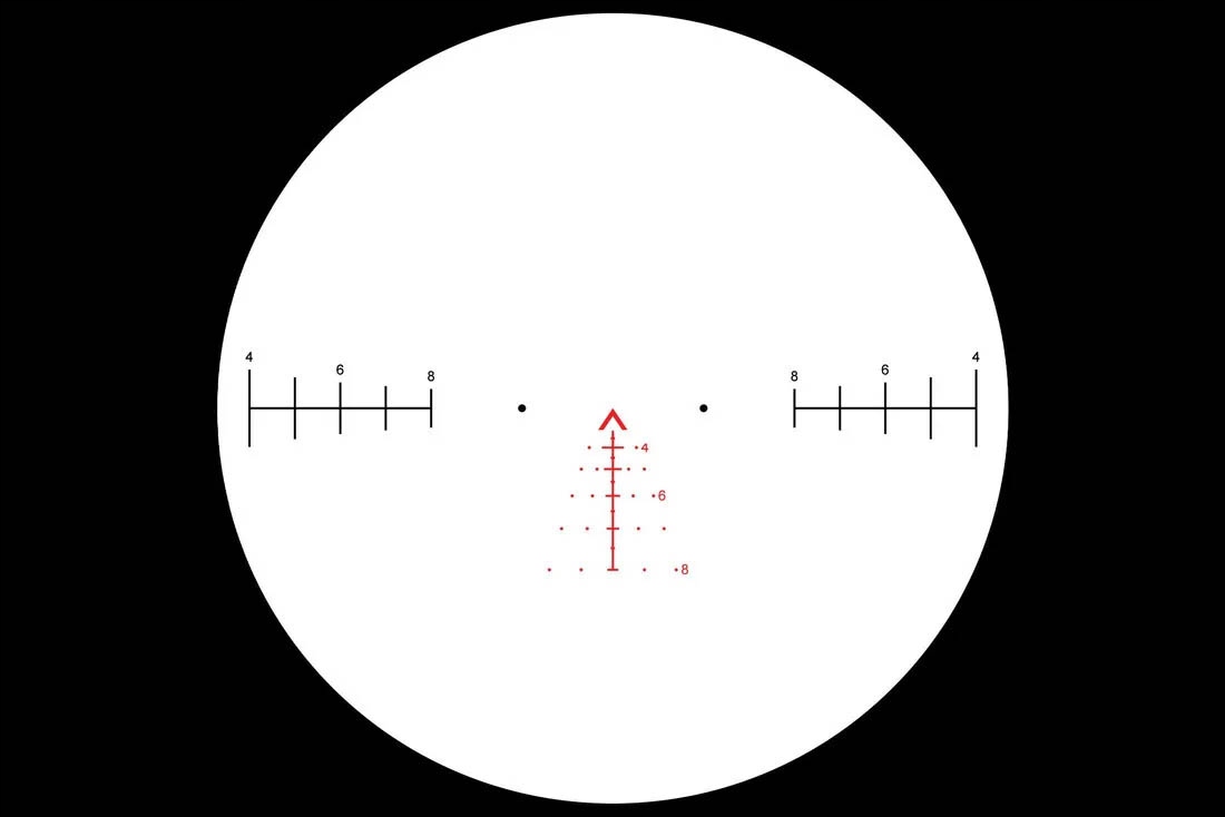 <р> Сетка имеет одиннадцать уровней регулировки яркости. Первые две ступени совместимы с ночным видением. При 1-кратном увеличении он действует как коллиматорная прицельная точка, позволяя вести динамичную стрельбу на коротких дистанциях. Настройка сетки осуществляется с помощью закрытых барабанов со значением щелчка 0,5 МОА.Большое расстояние от глаз и плавная регулировка увеличения