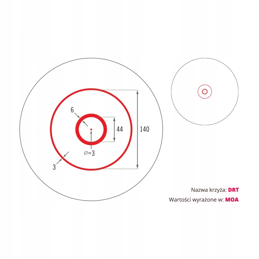 Яркое пятно диаметром 2 МОА также способствует отличной видимости. Пятно хорошо видно при любом освещении, что позволяет быстро нацелиться на цель и произвести точный выстрел. Любые изменения освещения устраняются с помощью сетки DRT MOA с зеленой или красной подсветкой. Сетка дополнительно оснащена 12 уровнями подсветки, улучшающими видимость при резких изменениях окружающего освещения.