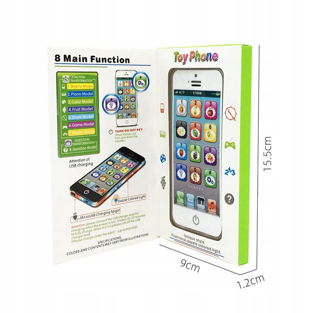 Установил игрушечный телефон с различными звуковыми эффектами, которые звучат как реальные. Кроме того, после нажатия кнопки «Освещенная домой», различные веселые мелодии, которые могут.