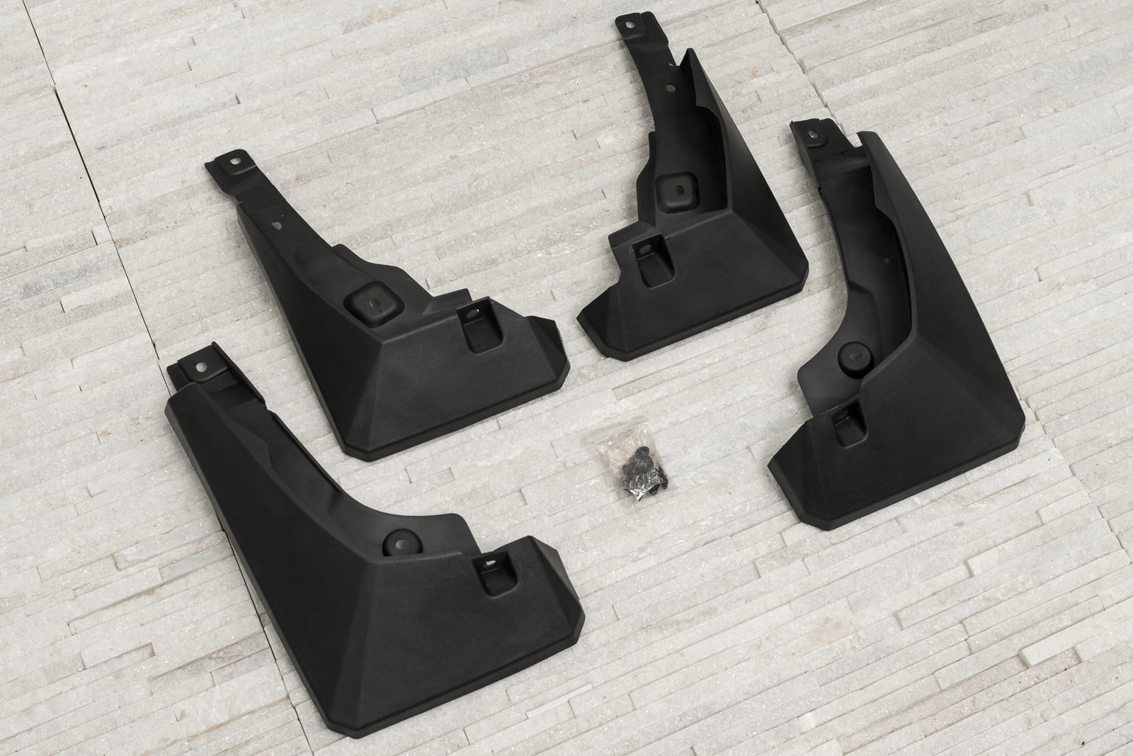 В комплект входит комплект из четырех брызговиков и элементов крепления. Изделие устанавливается на заводские места, без дополнительных доработок. Мы рекомендуем установку в профессиональной мастерской.