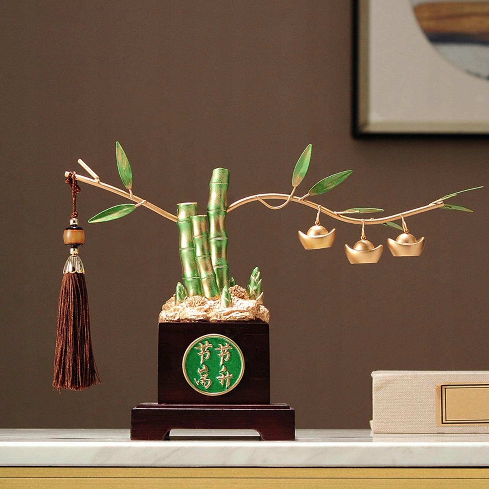 [материал высочайшего качества]: бамбуковая скульптура изготовлена из высококачественной смолы, которая является экологически чистой, гладкой, долговечной и трудной для перелома, а также может использоваться по долгам времени