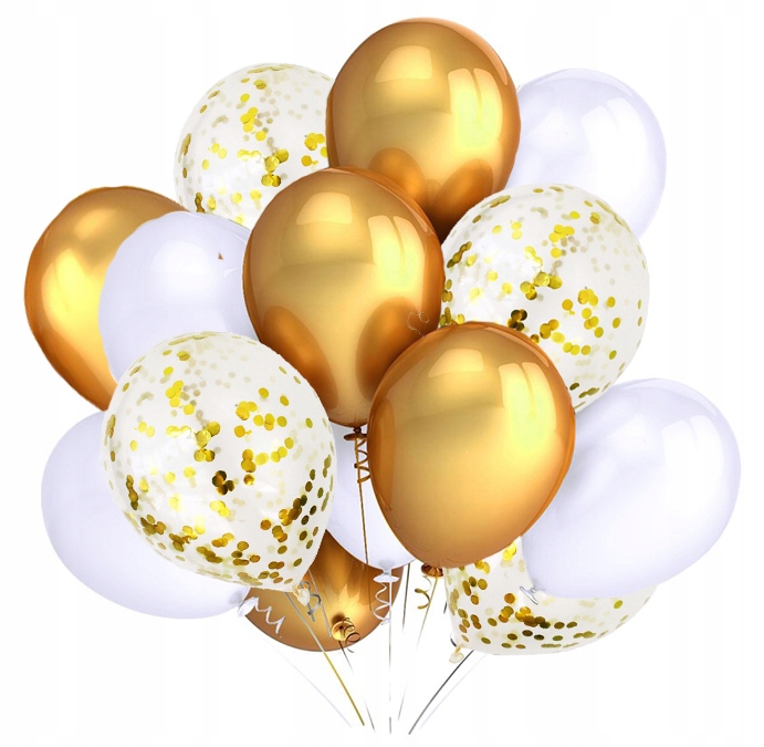 - Шарики золотые и белые с жемчугом, гладкие металлик, диаметр 23 см, 20 шт.