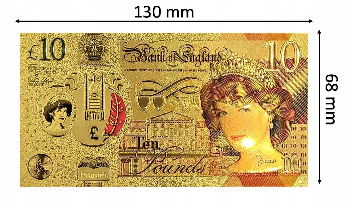 ПОЗОЛОЧЕННАЯ БАНКНОТА 10 ФУНТОВ ДИАНА СПЕНСЕР