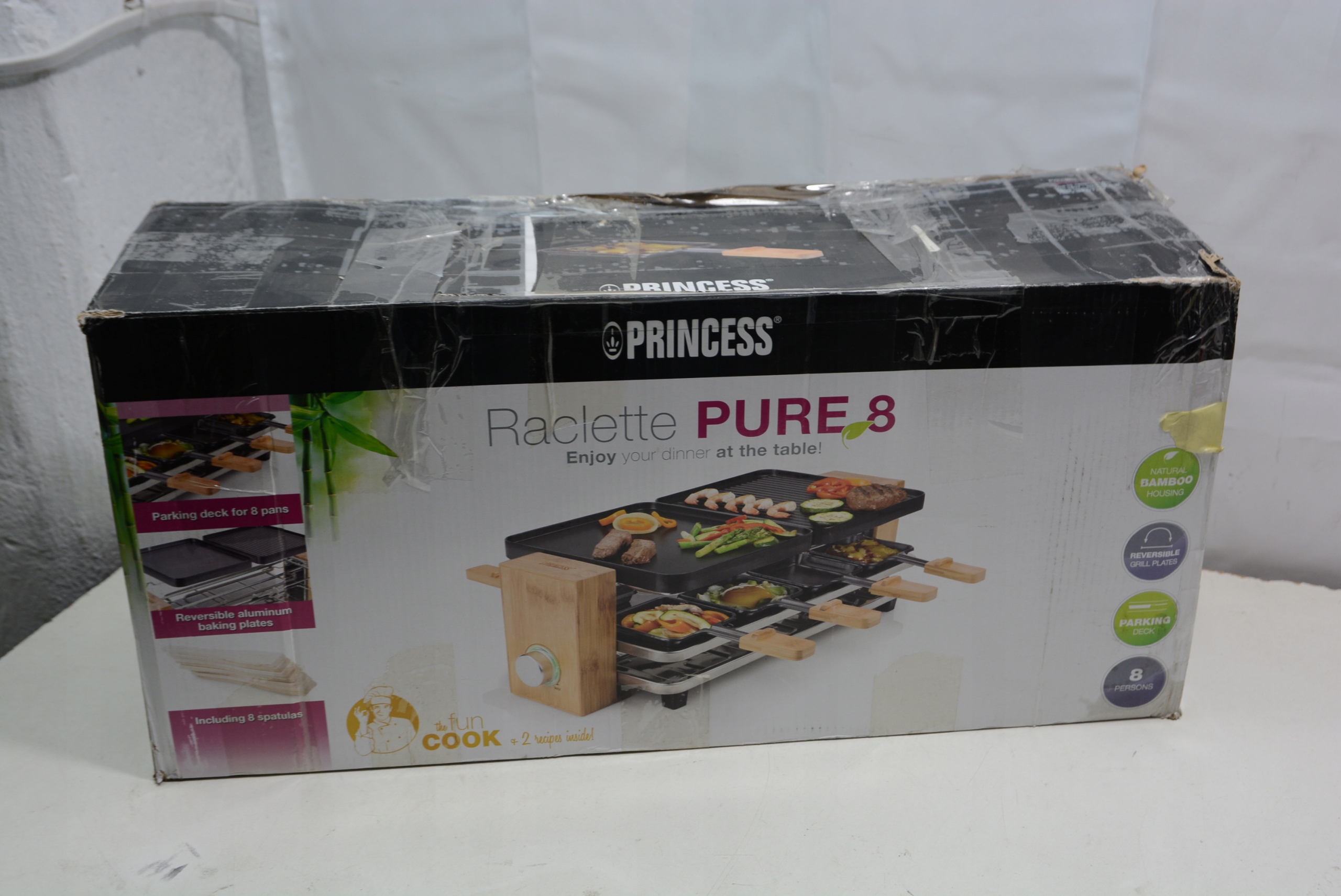 - Прикрепленные компоненты: Гриль Принцесса 162910 Raclette Pure 8, 8 Patelnees for Raclette, 8 Wooden Spatulas, пользовательская принцесса 162910. Руководство