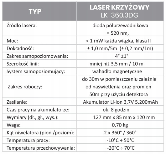 - Многолинейный лазер LK-360.3DG имеет возможность генерировать три плоскости по 360 градусов, одну горизонтальную и две вертикальные, пересекающиеся под углом 90 градусов.