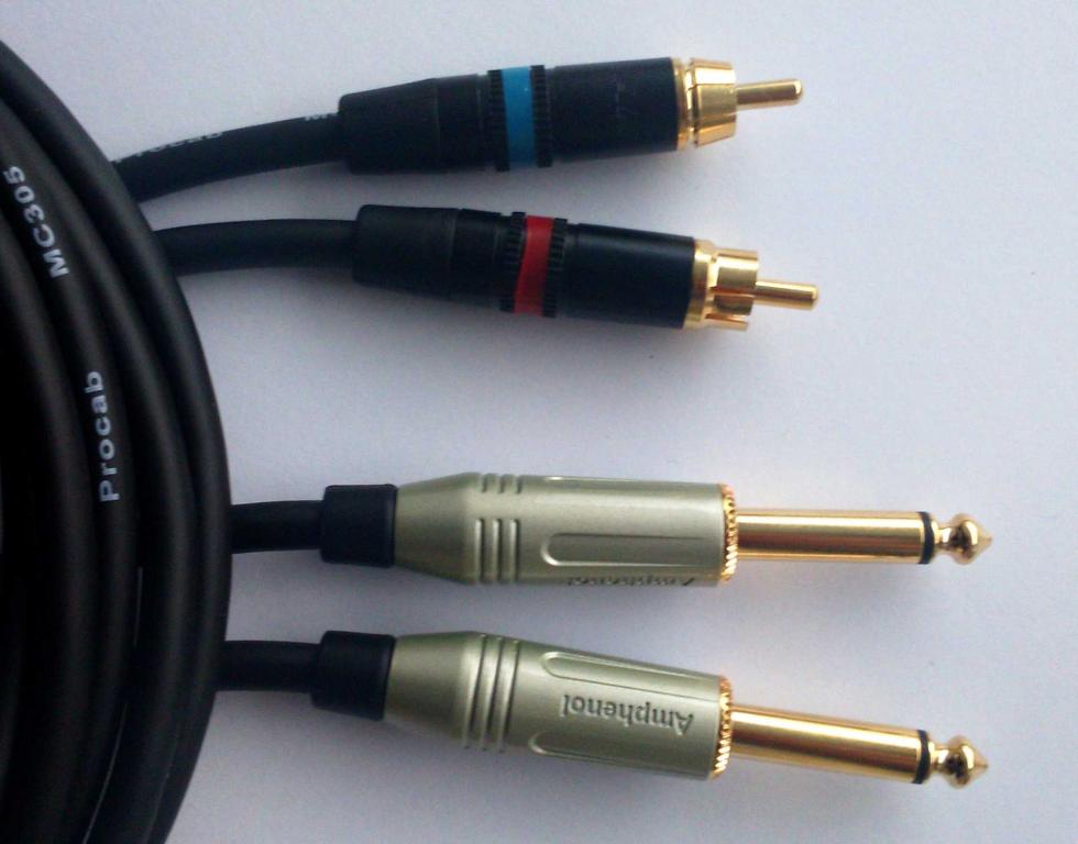 2 x Большой штепсельный домкрат моно 6,3 мм/2 x rca (2 штеки czincz)