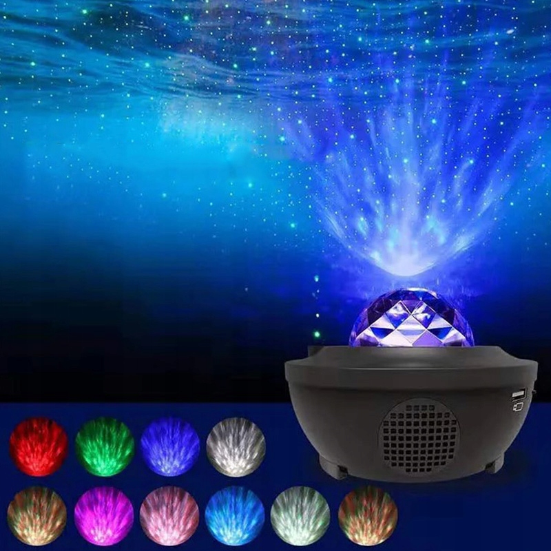 Представленный проектор может излучать потрясающие световые эффекты. Отличие его от других – это большая функциональность. Он имеет встроенный динамик, подключается к смартфону через Bluetooth и может управляться с помощью специального пульта дистанционного управления. Его можно использовать как ночник или как аттракцион на домашних вечеринках. Устройство может имитировать красочное звездное небо в нескольких режимах освещения. Проектор может работать в 3-х режимах освещения, благодаря чему мягко освещает помещение, а бесшумный вращающийся механизм не нарушает сон.