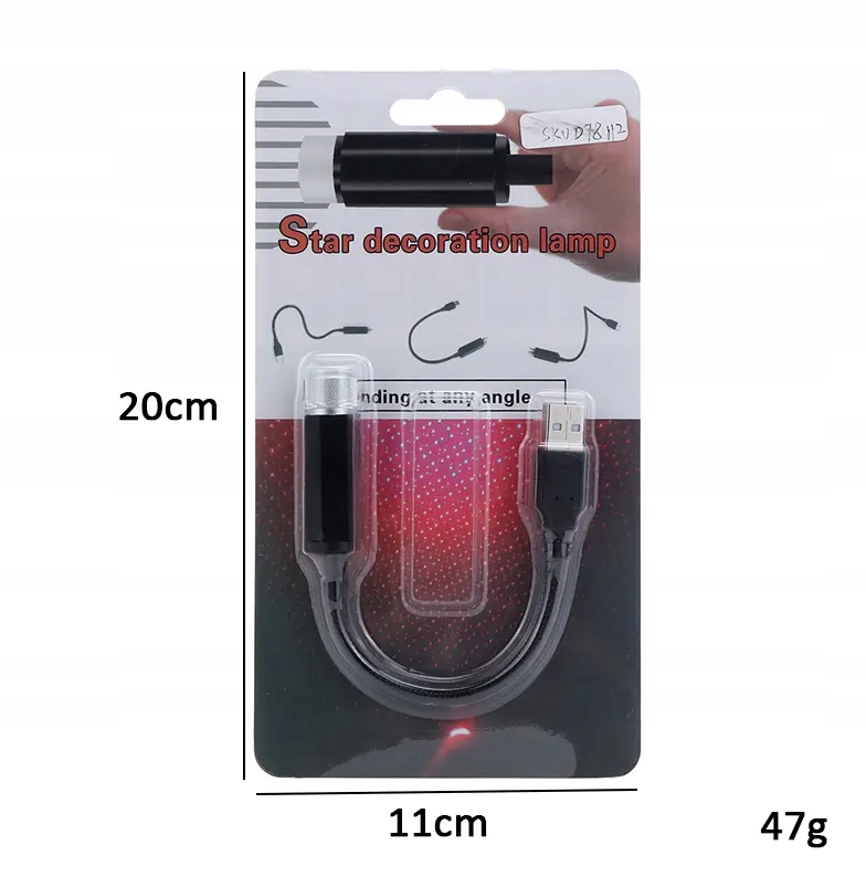 Starry Sky USB -проекционная лампа - это миниатюра декоративная лампа , создавая эффект звездного неба с помощью красного светодиода. Благодаря гибкому плечу, вы можете точно направить свет на потолок автомобиля, стену или потолок в квартире. Идеально как светодиодная автомобильная лампа и впечатляющая декоративная лампа дома .
