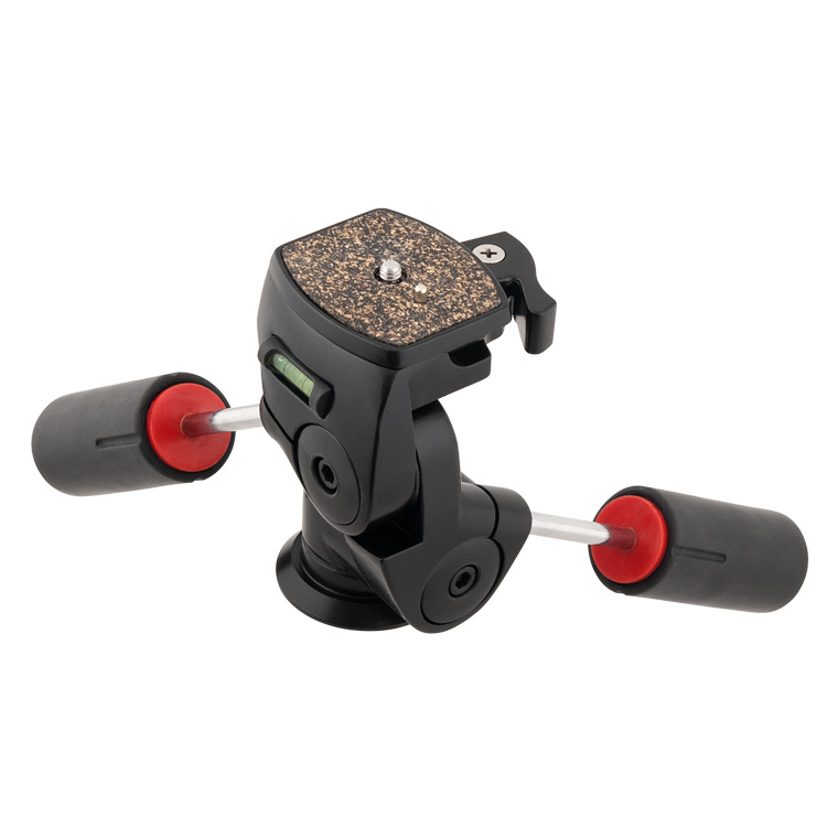 Оба рычага ориентированы под соответствующим углом к голове, чтобы не затруднять крепление камеры: когда камера находится в горизонтальном положении, рычаги ориентированы по диагонали вниз. Благодаря этому ручки находятся на правильном расстоянии от камеры (не слишком близко) и ими легче маневрировать.