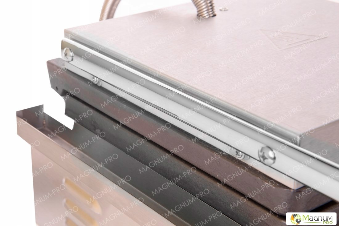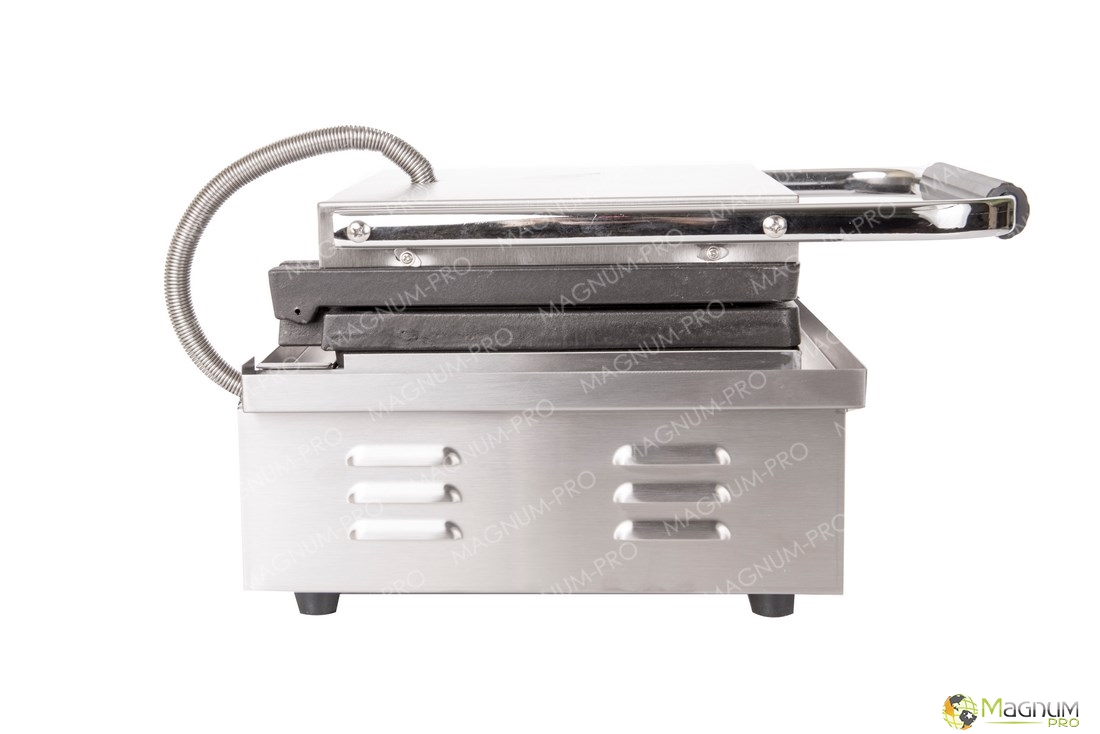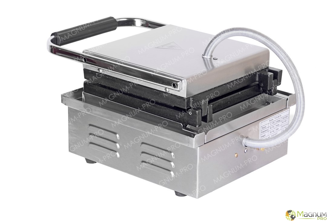 Корпус изготовлен из высококачественной нержавеющей стали, которая очень проста в обслуживании и содержать в чистоте. Чугунные нагревательные пластины, покрытые антипригарной эмалью. Вафельница имеет термоизолированную ручку. Устройство стоит на 4 нескользящих ножках.