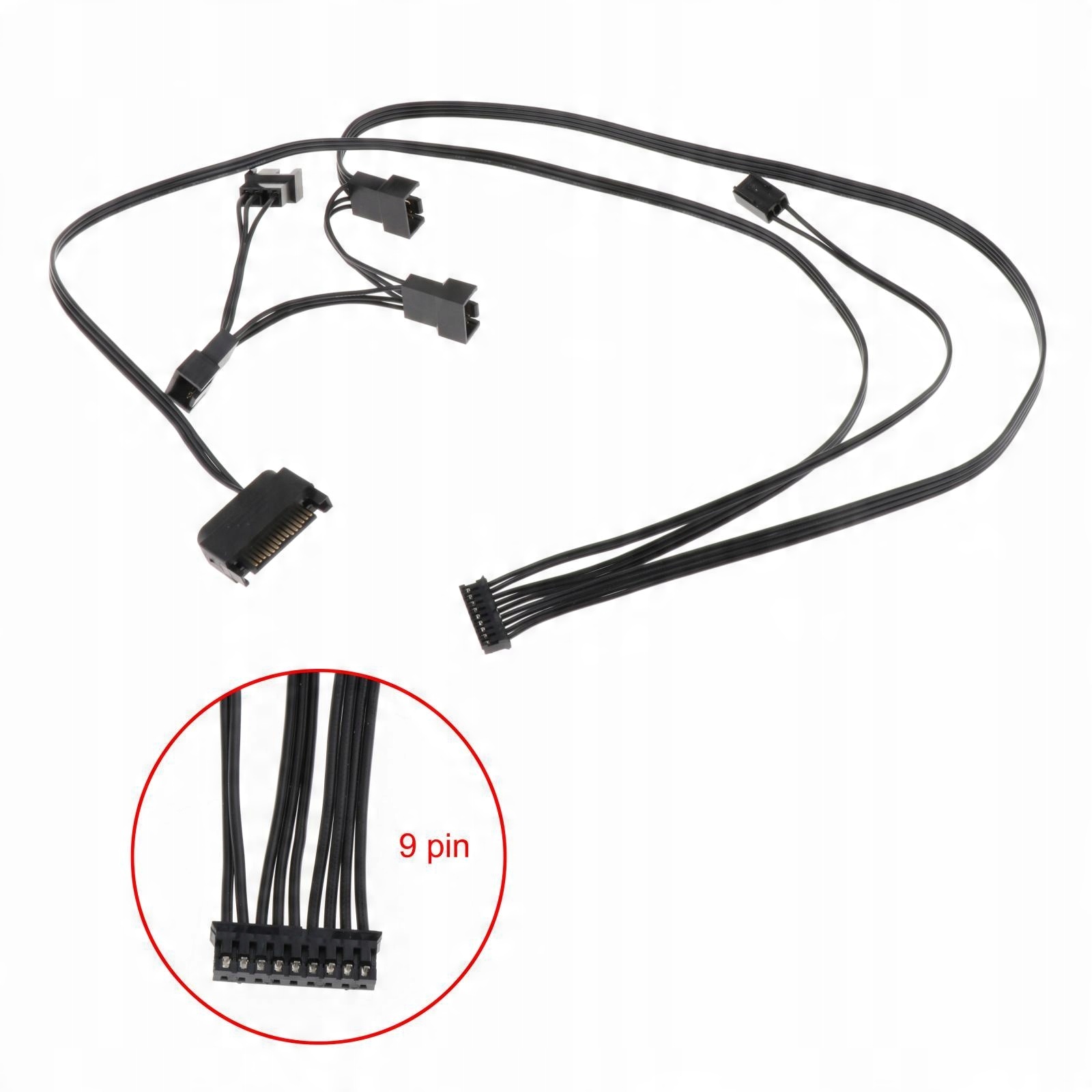 Приложение (9-контактное): ниже внизу подключено к 9-контактному соединению в основном блоке и содержит 3-контактный разъем вентилятора для материнской платы, два 4-контактного разъема вентилятора, а также требует заглушки питания, чтобы все работало правильно.