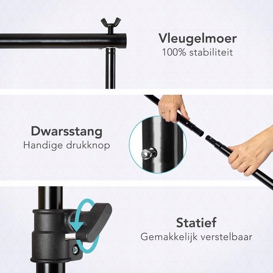 Штатив весит всего 4,20 кг, и его можно легко переносить в прилагаемой сумке для переноски. Таким образом, у вас всегда будет лучший фон для любой фото- или видеосъемки.