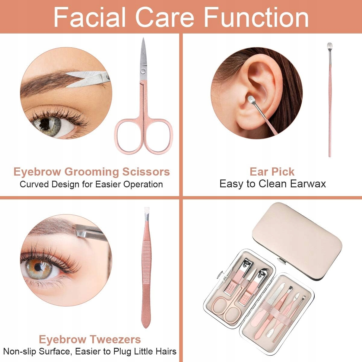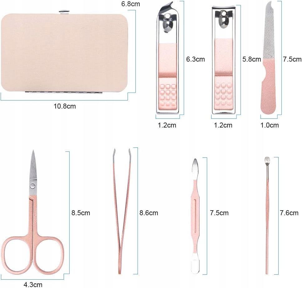 - Universal: это много -функциональный комплект ухода, который обеспечивает отличный уход за ногтями. Инструменты для ногтей могут разрезать и отполировать ногти и удалить вокруг них мертвую кожу. Ножницы для бровей и бровей могут разрезать ваши брови, чтобы сделать их более красивыми.