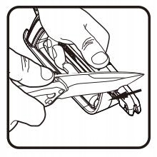 Негабаритная ручка позволяет использовать перчатки. Высокая защита от рук от травм, вызванных лезвиями. Сформированная резиновая ручка и основание обеспечивают безопасное и удобное удержание