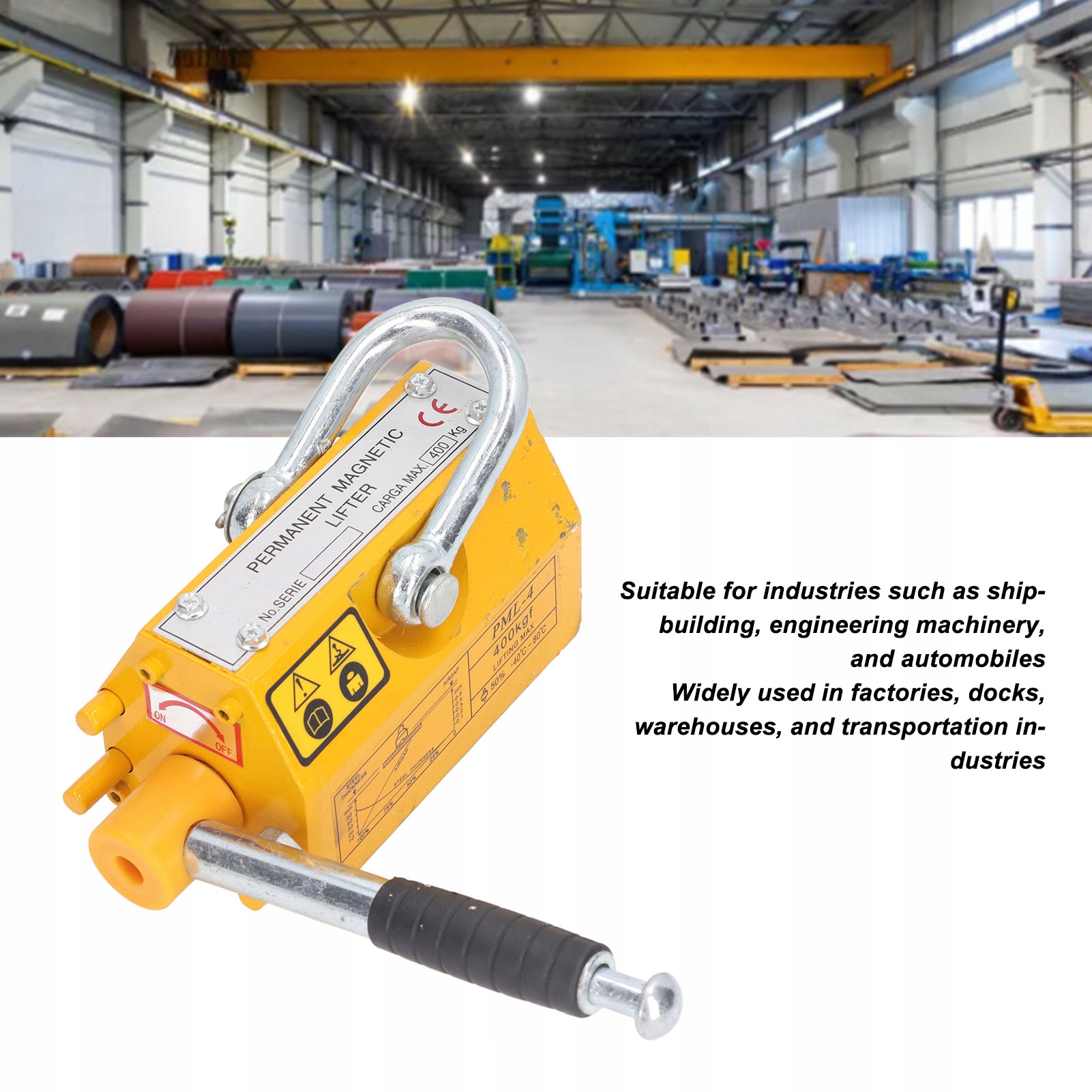 Магнитный подъем с прочным магнитом 400 кг с безопасной анти -коллизионной ручкой для заводского дока склада