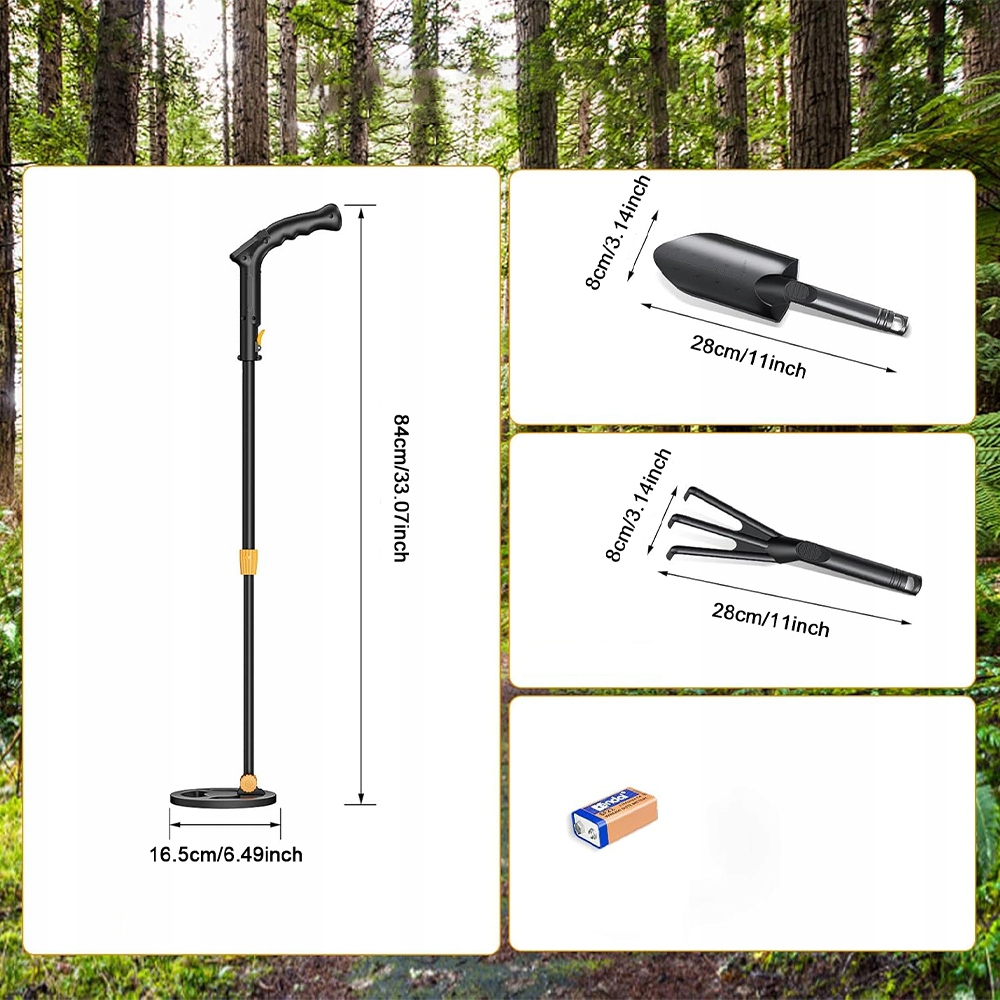 В комплект также входит легкий детский металлоискатель, лопатка и грабли. Это не только отличный выбор для путешествий, отдыха, кемпинга и походов, но и отличный подарок на день рождения или Рождество. Наши металлоискатели изготовлены из безопасного АБС-пластика. Позвольте вашим детям насладиться охотой за сокровищами на открытом воздухе с помощью нашего водонепроницаемого детского металлоискателя.