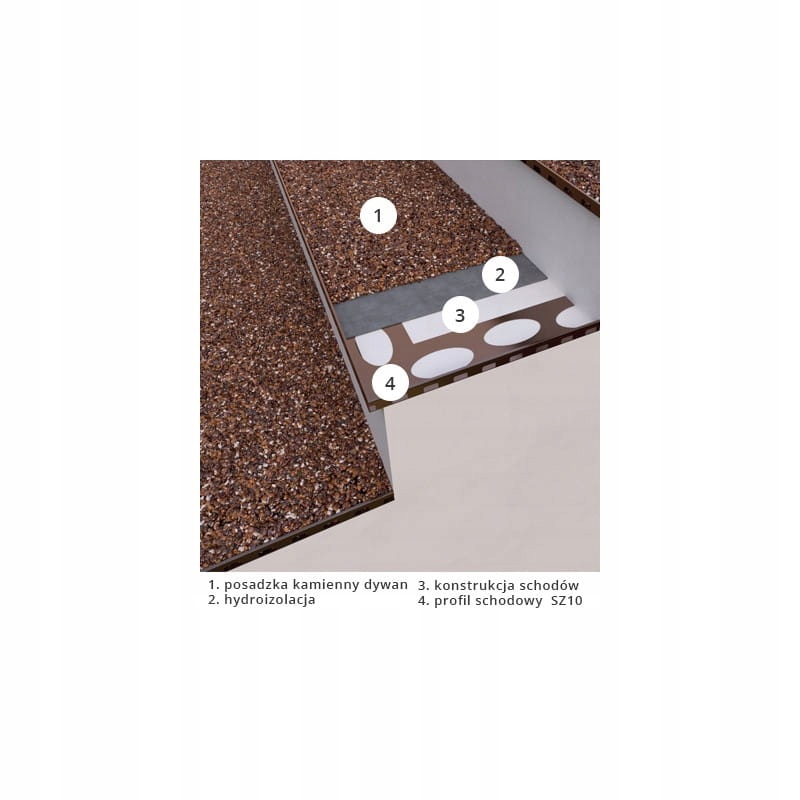 Лестничный профиль SZ10, предназначен для отделки краев ступеней с полимерным полом «каменный ковер».