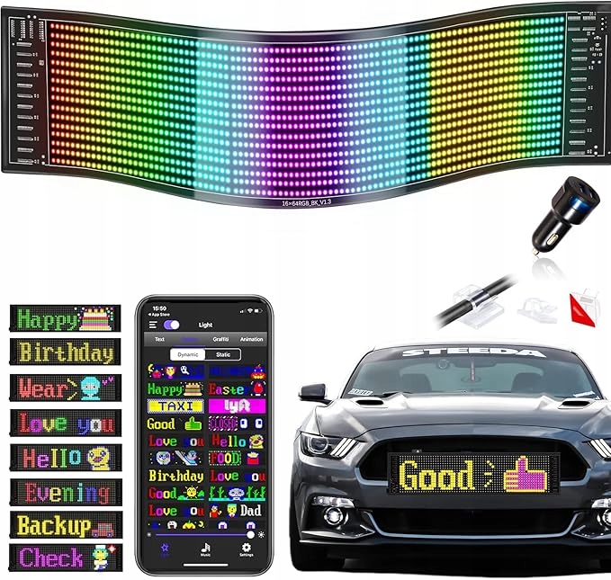 ПРОГРАММИРУЕМАЯ СВЕТОДИОДНАЯ ПЛАТА 37X9,2 СМ С ПРИЛОЖЕНИЕМ BLUETOOTH