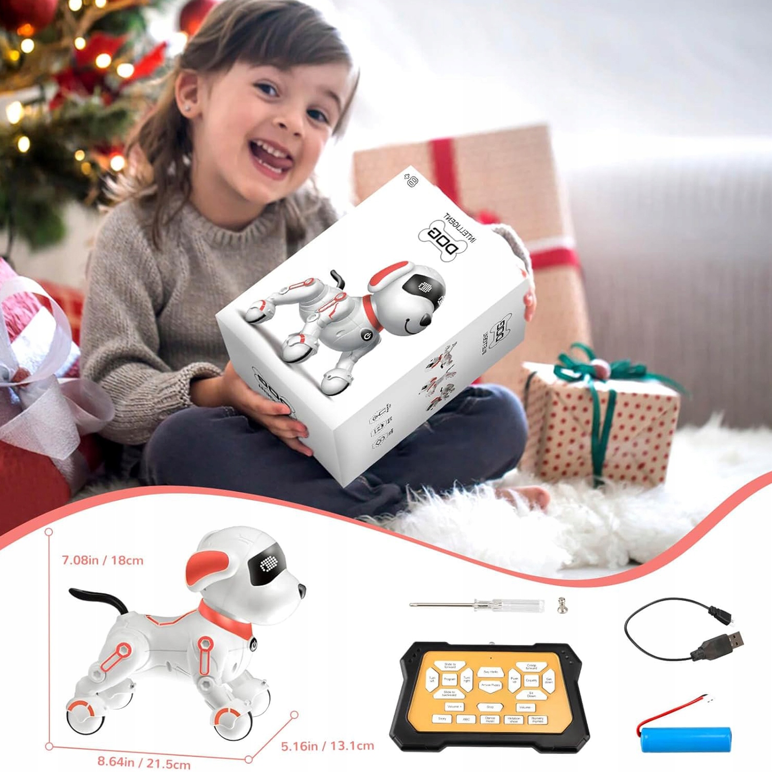 - ✅ Наша интеллектуальная собака-робот-это многофункциональный компаньон, который может рассказывать истории, петь песни для детей, танцевать, преподавать английский язык и подражать 6 различным звукам животных, предоставляя детям различные образовательные и развлекательные возможности.