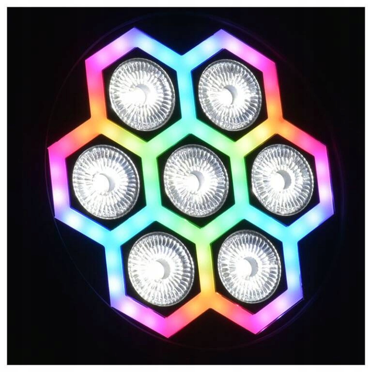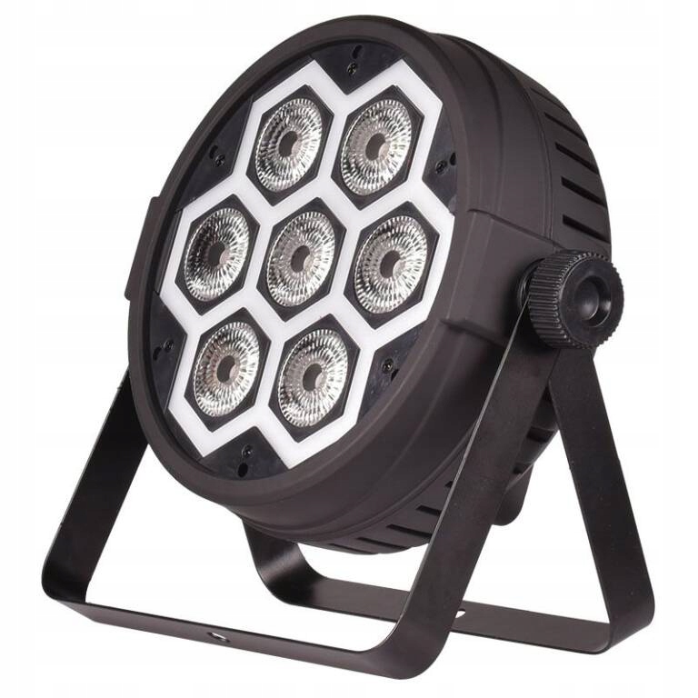 LIGHT4ME FRAME PAR 7x12 LED RGBW — это современный светодиодный сценический прожектор с неоновыми и радужными эффектами, предназначенный для дизайнеров освещения, ищущих необычные и инновационные решения. Оборудование, помимо традиционной системы из семи диодов, имеет вокруг каждого из них световую рамку, напоминающую соты. Такое решение позволяет создавать дополнительные световые эффекты и выделяет нашу осветительную установку среди других. Кроме того, в Frame Par есть интересное улучшение в виде конверсионных фильтров CTB и CTO, которые позволяют изменять цветовую температуру света. Точная система смешивания цветов позволяет работать с палитрой, насчитывающей более 16 миллионов комбинаций.